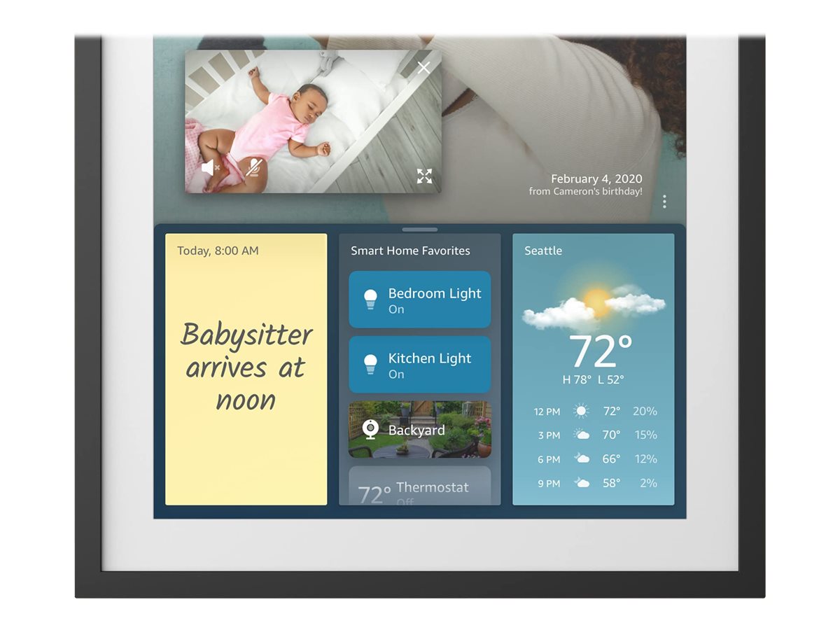 Echo Show 15 er designet til opslugende underholdning og smart home management. Denne smarte skærm har en levende 15,6" LCD-skærm med en opløsning på 1920 x 1080, så brugerne kan nyde Netflix og Amazon Prime Video i klarhed. Med indbygget Alexa forenkler stemmestyring opgaver som at afspille musik, tjekke vejret eller styre smart home-enheder. Touchskærmen supplerer stemmekommandoer, hvilket gør den til en alsidig tilføjelse til ethvert rum. Forbindelsen er problemfri med trådløse funktioner og kompatibilitet med forskellige IoT-enheder. Lydsystemet forbedrer din seeroplevelse, mens den integrerede forstærker og det vægmonterbare design giver fleksibilitet i placeringen. Uanset om den bruges til videoopkald, streaming eller som digital fotoramme, udmærker Echo Show 15 sig ved sin funktionalitet og stil.