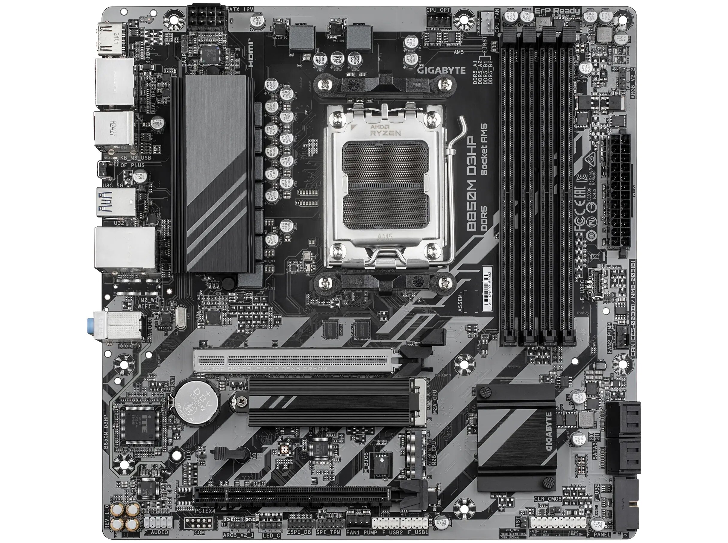 Gigabyte B850M D3HP - Bundkort - micro ATX - AM5 sokkel - B850M Chipset - USB 3.2 Gen 1, USB-C 3.2 Gen 1 - Gigabit LAN - onboard grafik (CPU påkrævet) - HD Audio (8-kanaler)
