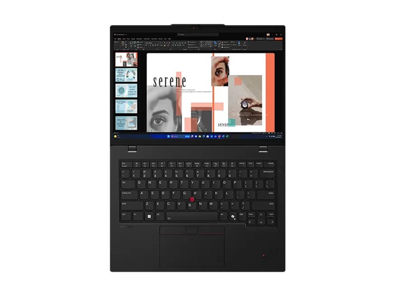 Vi har forbedret tilgængeligheden på ThinkPad-tastaturet ved at tilføje en LED Braille-indikator til at angive strømporten og taktile mærker på tasterne, så alle hurtigt og korrekt kan identificere og navigere rundt. Derudover kan du gøre mere med vores ikoniske TrackPoint end blot at navigere– dobbelttryk for at åbne den brugerdefinerede hurtigmenu i TrackPoint, hvor du kan optimere indstillingerne for lyd og billede. For at få ekstra brugervenlighed har vi øget størrelsen på TrackPad og byttet om på placeringen af hhv. Ctrl- og Fn-tasten. Luftstrømskanaler bagpå holder systemet afkølet, så det kan yde bedre.
