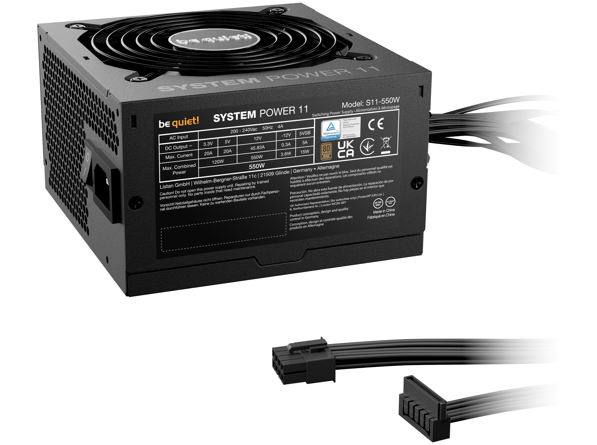 be quiet! System Power 11 550W - Strømforsyning (intern) - ATX12V 3.1/ EPS12V 2.92 - 80 PLUS Bronze - AC 100-240 V - 550 Watt - sort
