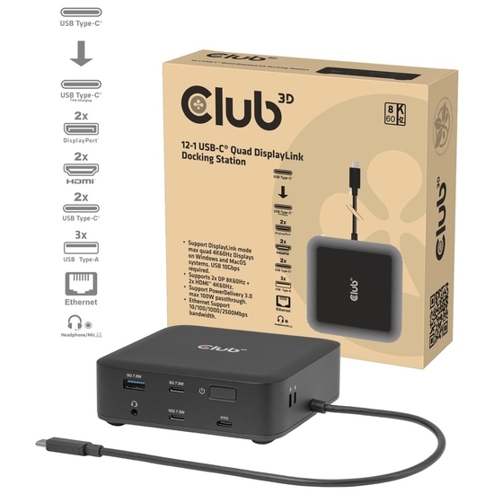 Club 3D CSV-2542 - Dockingstation - for laptop - USB - 2 x HDMI, 2 x DP - 1GbE, 2.5GbE
