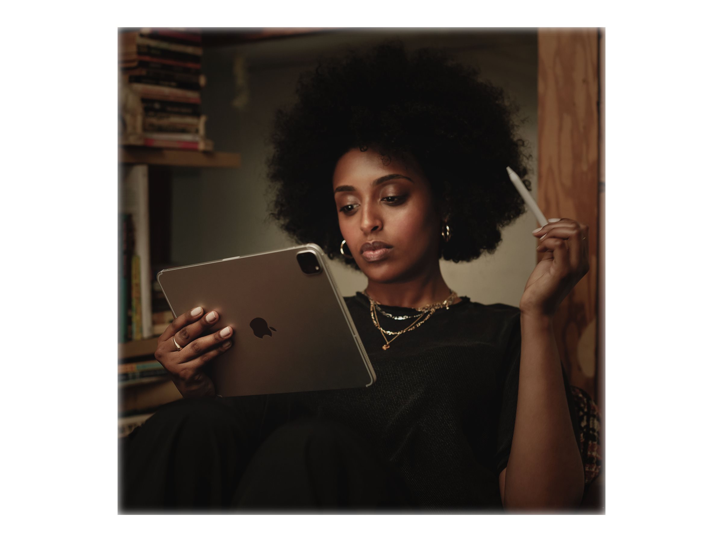 Avancerede kameraer kombineret med en stor skærm, hurtig ydeevne og de finkalibrerede sensorer har altid gjort iPad til noget særligt. Vidvinkelkameraet og det nye ultravidvinkelkamera gør det nemt at tage det perfekte billede eller optage en superflot video. Og sammen med fire højttalere og mikrofoner i studiekvalitet kan du blive dit helt eget filmhold.