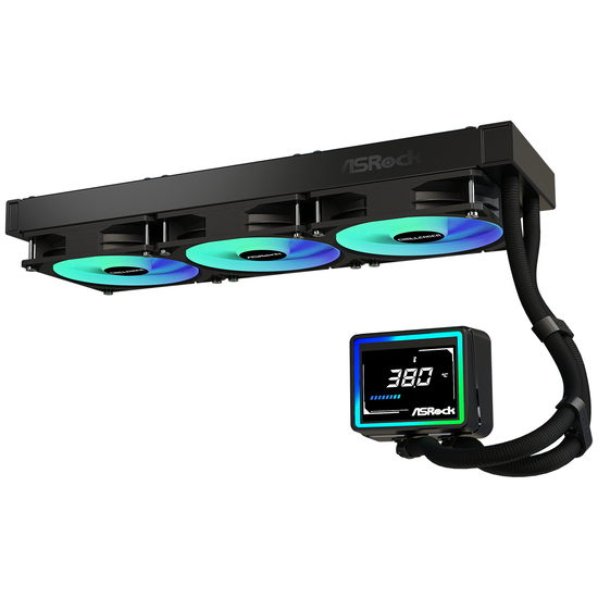 Asrock Challenger 360 Digital ARGB - Processors flydende kølesystem - med LED-display - Radiatorstørrelse: 360 mm - (for: AM4, LGA1700, AM5, Socket, LGA1851) - kobber - 120 mm - sort