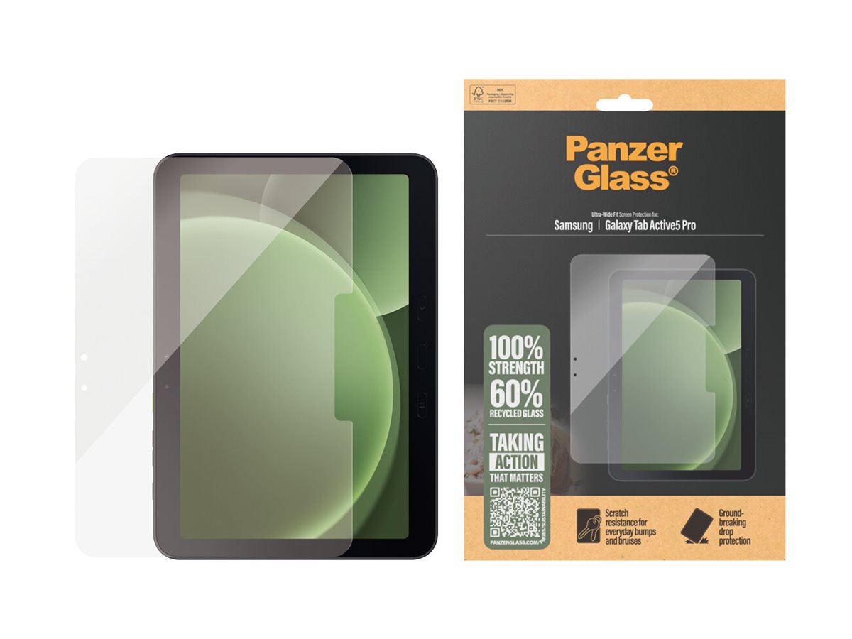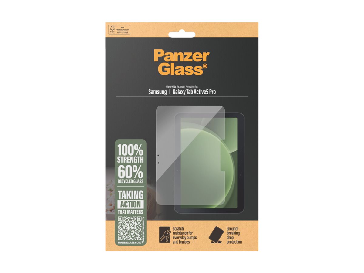 Vi præsenterer vores PanzerGlass skærmbeskytter, lavet af 60% glas. Børn elsker deres tablets. Men de skrammer, ridser, taber og smadrer også deres tablets. Sådan er det bare, og det er der ikke noget at gøre ved … eller jo, det er der faktisk: Med en skærmbeskytter fra PanzerGlass ️ kan du holde hverdagens ups'er, hovsa'er og åh-neeeeej'er på sikker afstand af din skærm. Det hærdede glas fungerer som en diskret airbag, der beskytter din tablet mod alt fra skarpe bordkanter og stenhårde fortove til ivrige børnehænder, der slår ned i skærmen. Glasset har endda en smudsafvisende belægning med antibakteriel effekt, der reducerer fedtfingre og dræber op til 99,99 % af alle almindelige overfladebakterier.Installationen er legende let, og når skærmbeskytteren én gang er sat på, er det slut med at frygte synet af din tablet med kurs mod jorden. Det kommer muligvis aldrig til at ske, men hvis det gør, vil du fortryde, at du ikke klikkede "Tilføj til kurv".Skærmbeskytteren har størrelsen "Ultra-Wide Fit", som giver maksimal beskyttelse og en fuldendt skærmoplevelse, samtidig med at den efterlader plads til en case. Perfekt til dig, der vil beskytte hele fronten af din tablet. Og emballagen, ja, den er naturligvis FSC -mærket og kan genanvendes.