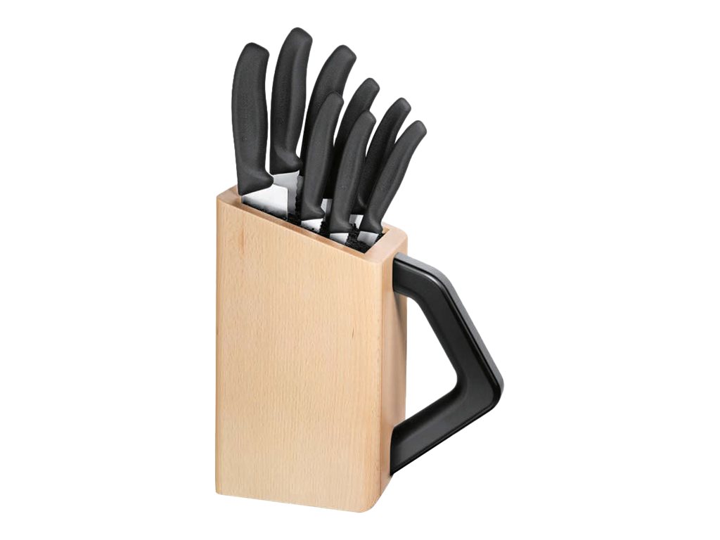 | Pakkeindhold | Santoku-kniv (17 cm), knivblok, skrællekniv (10 cm), skrællekniv (8 cm), brødkniv (21 cm), tomatkniv (11 cm), skærekniv (19 cm), skrællekniv (savtakket, 8 cm), steakkniv (11 cm) |