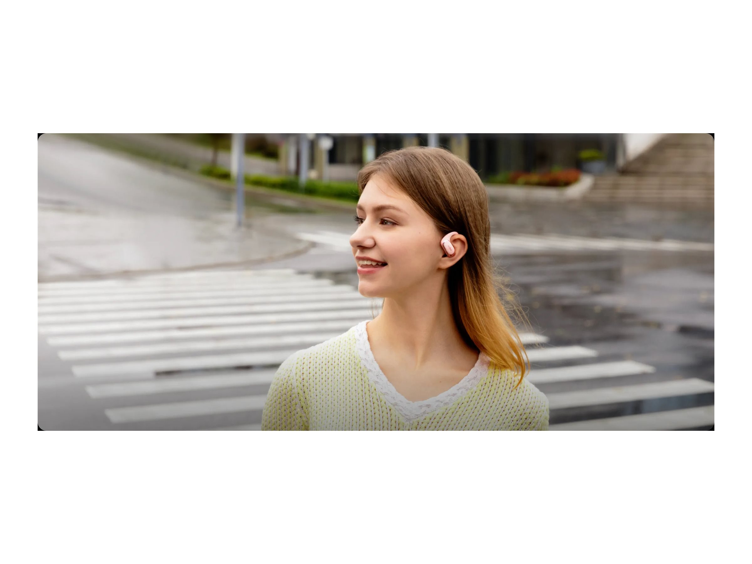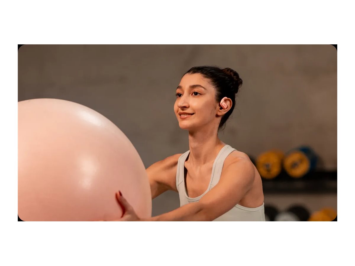 Disse ægte trådløse øretelefoner er designet med en åben øremontering og fremstillet af letvægtsmaterialer i polykarbonat, silikone og rustfrit stål og giver en behagelig, sikker pasform til brug hele dagen uden at gå på kompromis med lydkvaliteten.