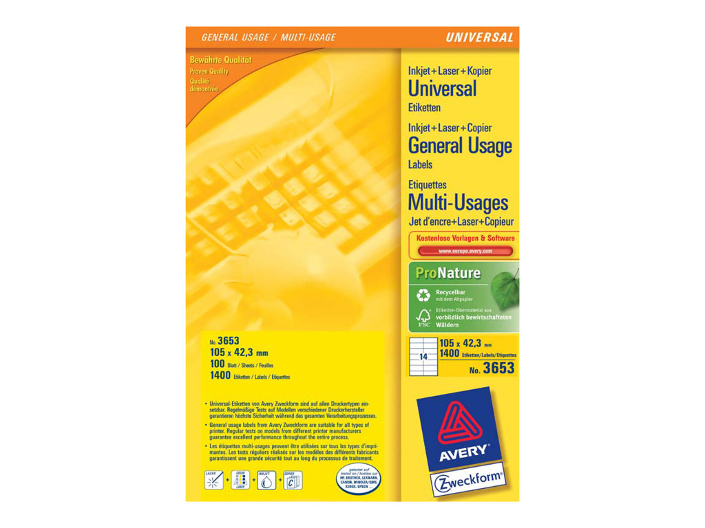 | Produktbeskrivelse | Avery - etiketter til flere formål - 1400 etikette(r) - 105 x 42.3 mm |