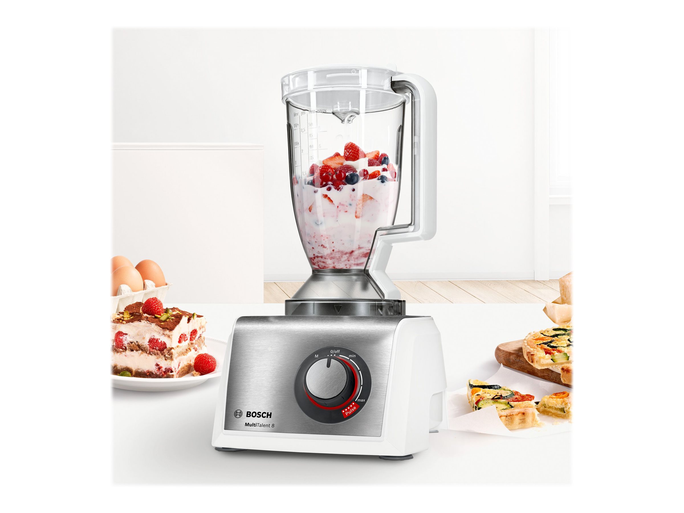 | Produktbeskrivelse | Bosch MultiTalent 8 MC812S814 - køkkenmaskine - 1250 W - børstet rustfrit stål/hvid |