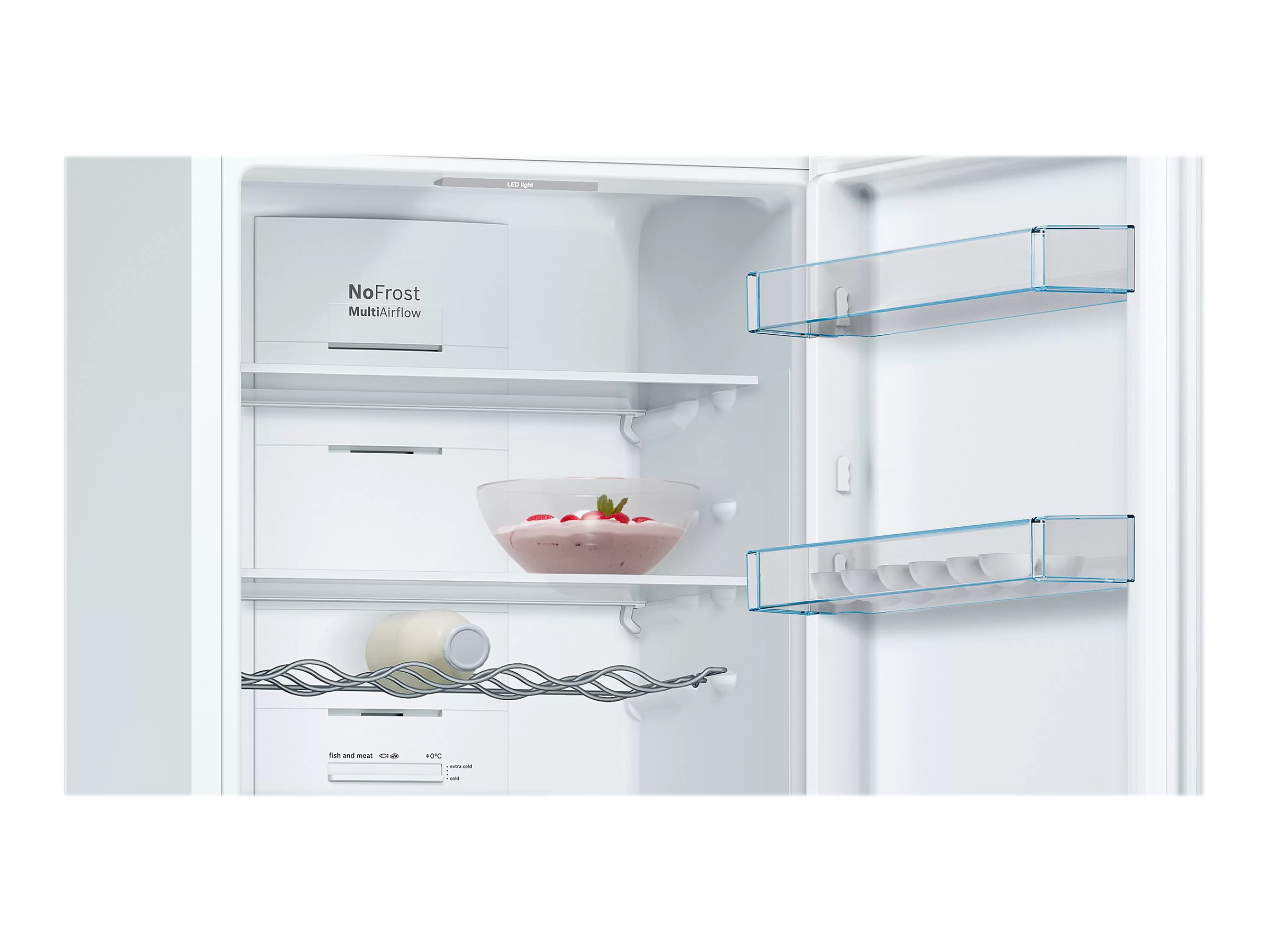 LED-lamper bruger mindre energi end almindelig køleskabsbelysning. Lamperne lyser hele køleskabet op indvendigt, selv når det er fuldt, uden at blænde dig.