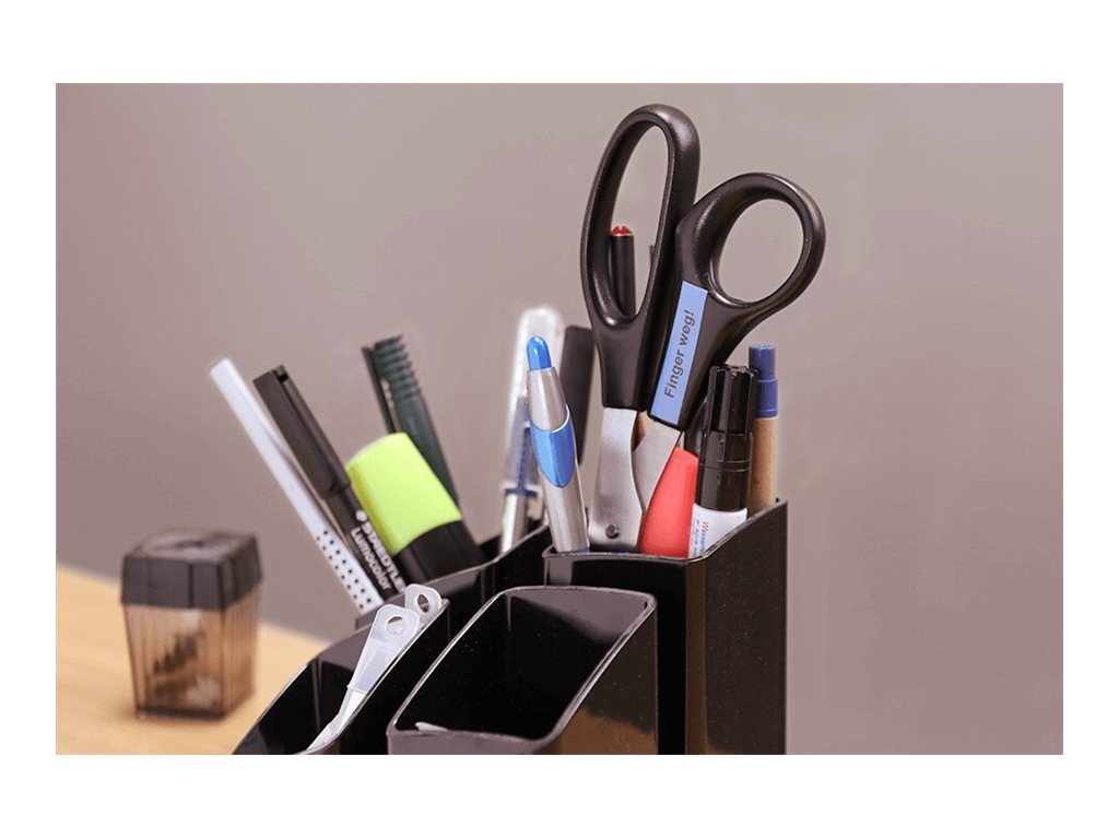 MK521BZ giver dig mulighed for at lave labels i høj kvalitet, der helt sikkert er nyttige overalt i dit hjem. Denne lille og kompakte tape fås i forskellige farve- og breddekombinationer og bruger direkte termisk udskrivning (ja, den er god nok – intet blæk) til at lave billedet på tapen.