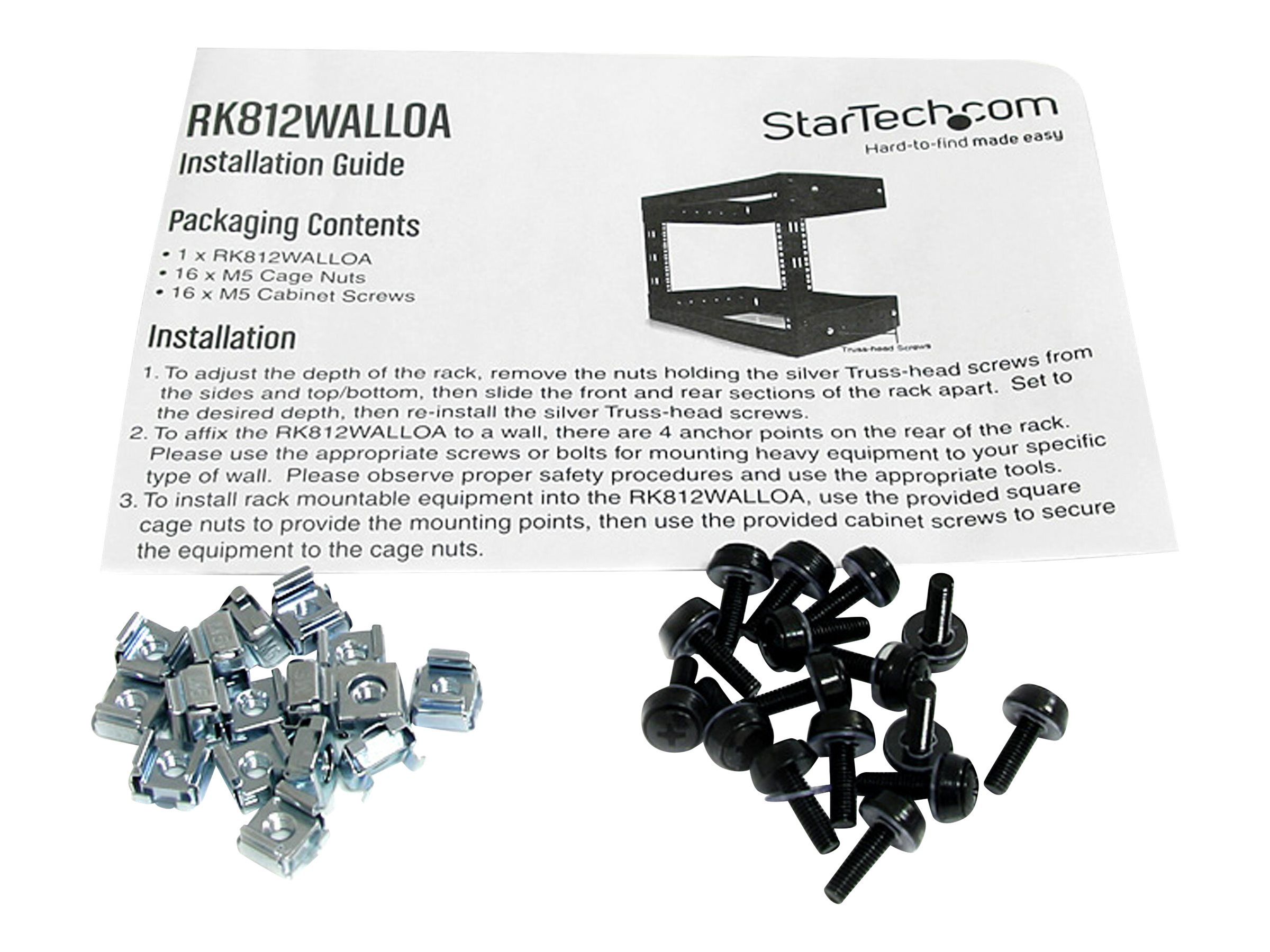 | Produktbeskrivelse | Startech 8U 19" Wall Mount Network Rack, Adjustable Depth 12-20" 2 Post Open Frame Server Room Rack for AV/Data/ IT Communication/Computer Equipment/Switch with Cage Nuts & Screws - 8U Adjustable Rack (RK812WALLOA) - rack - 8U |