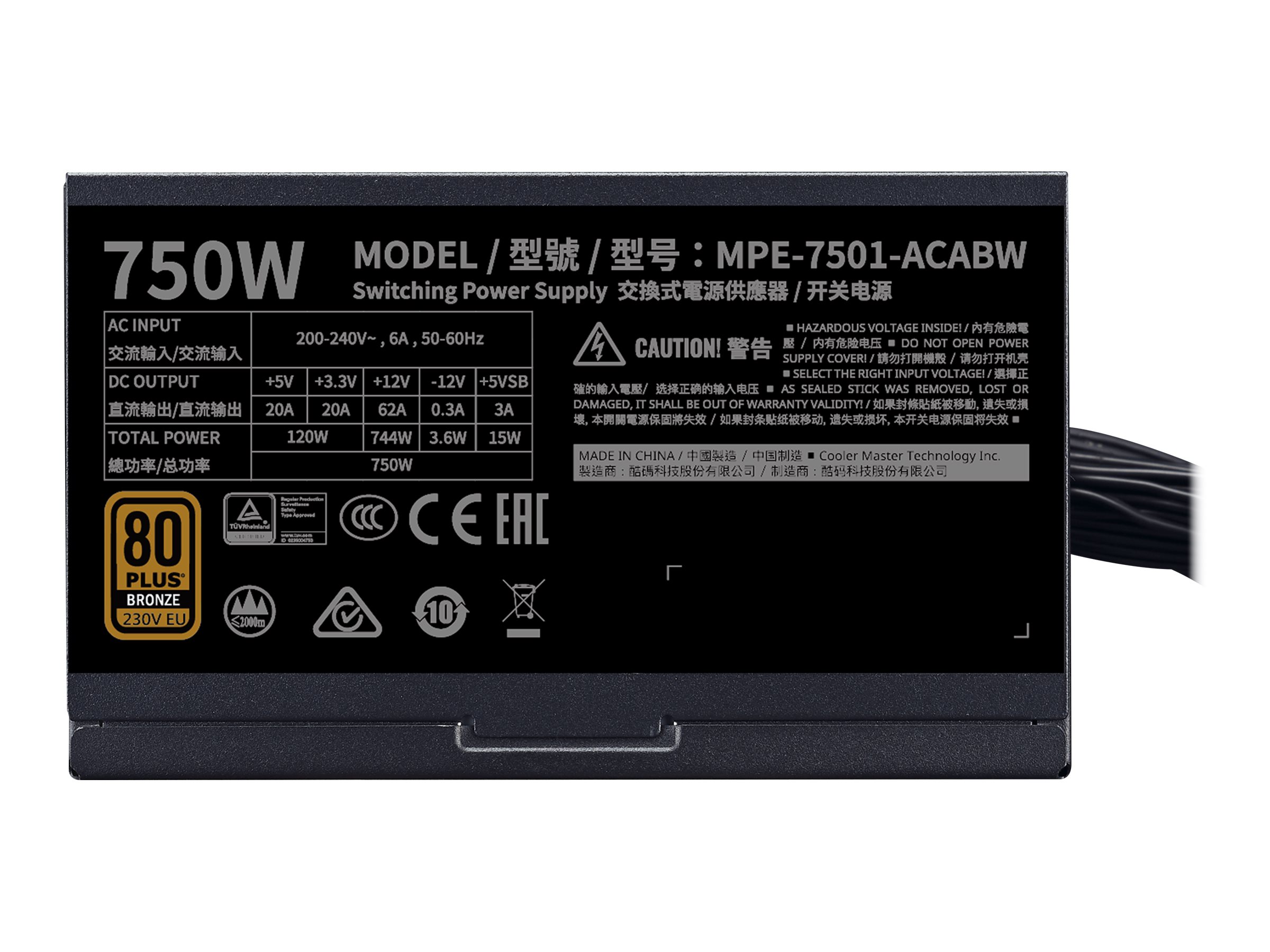 | Produktbeskrivelse | Cooler Master MWE Bronze V2 750 - strømforsyning - 750 Watt |