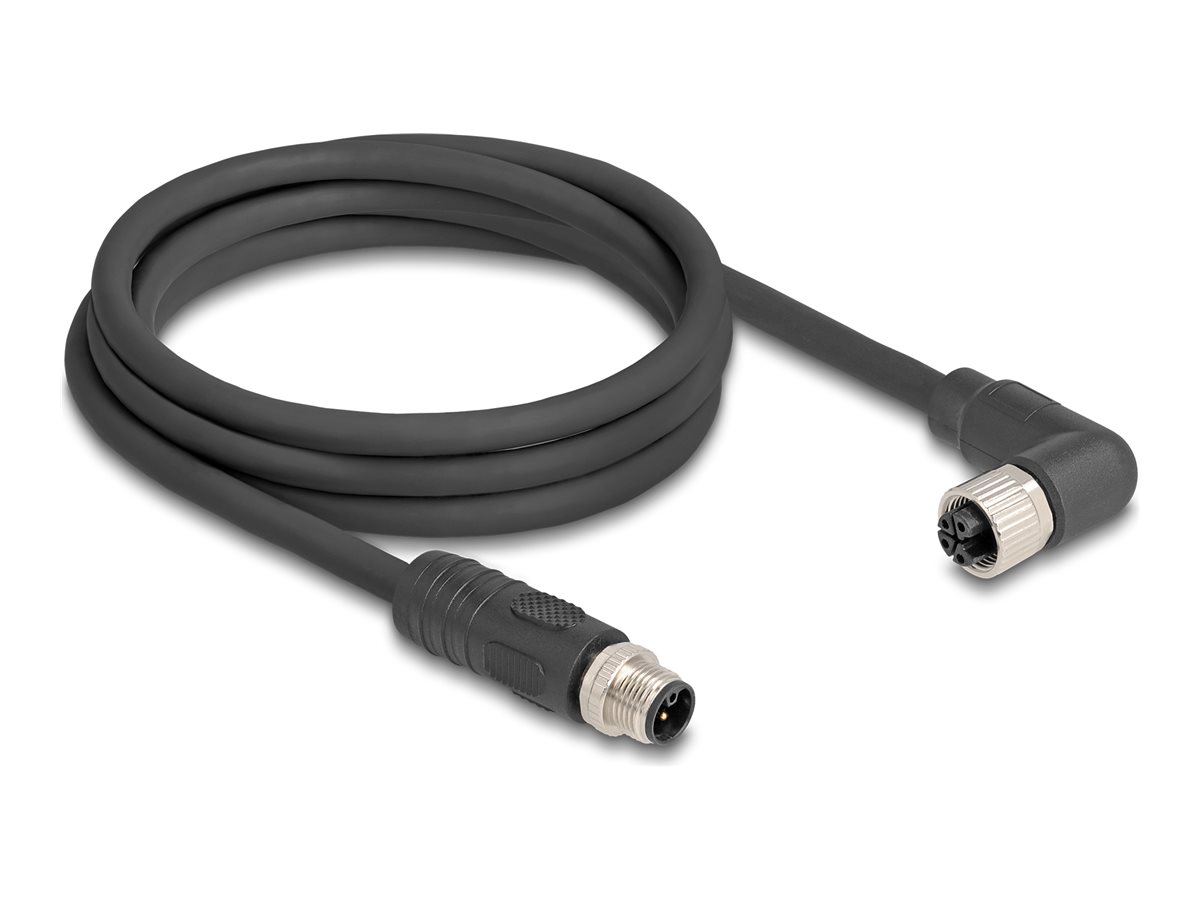 Delock - Strømkabel - 4 pin M12 (han) lige til 4 pin M12 (hun) højrevinklet - 63 V - 12 A - 2 m - halogenfri, siliconefri, dragkæde, L-kodet - sort