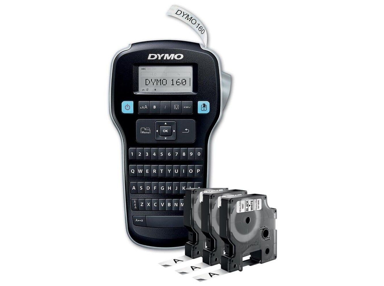 DYMO LabelManager 160 ValuePack - Etikettemaskine - S/H - Termisk - 3 Ruller (1,2 cm) - 180 dpi - op til 12 mm/sek. - 2 skrivelinier