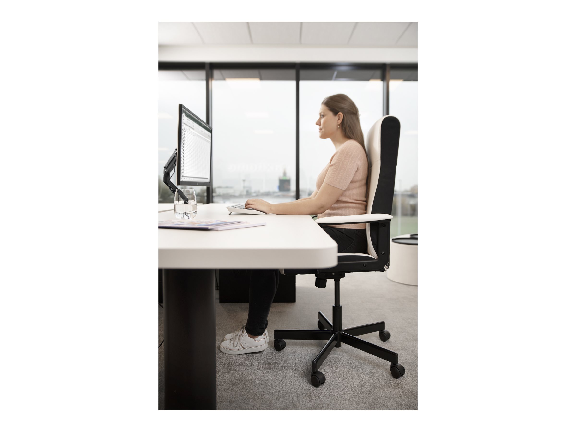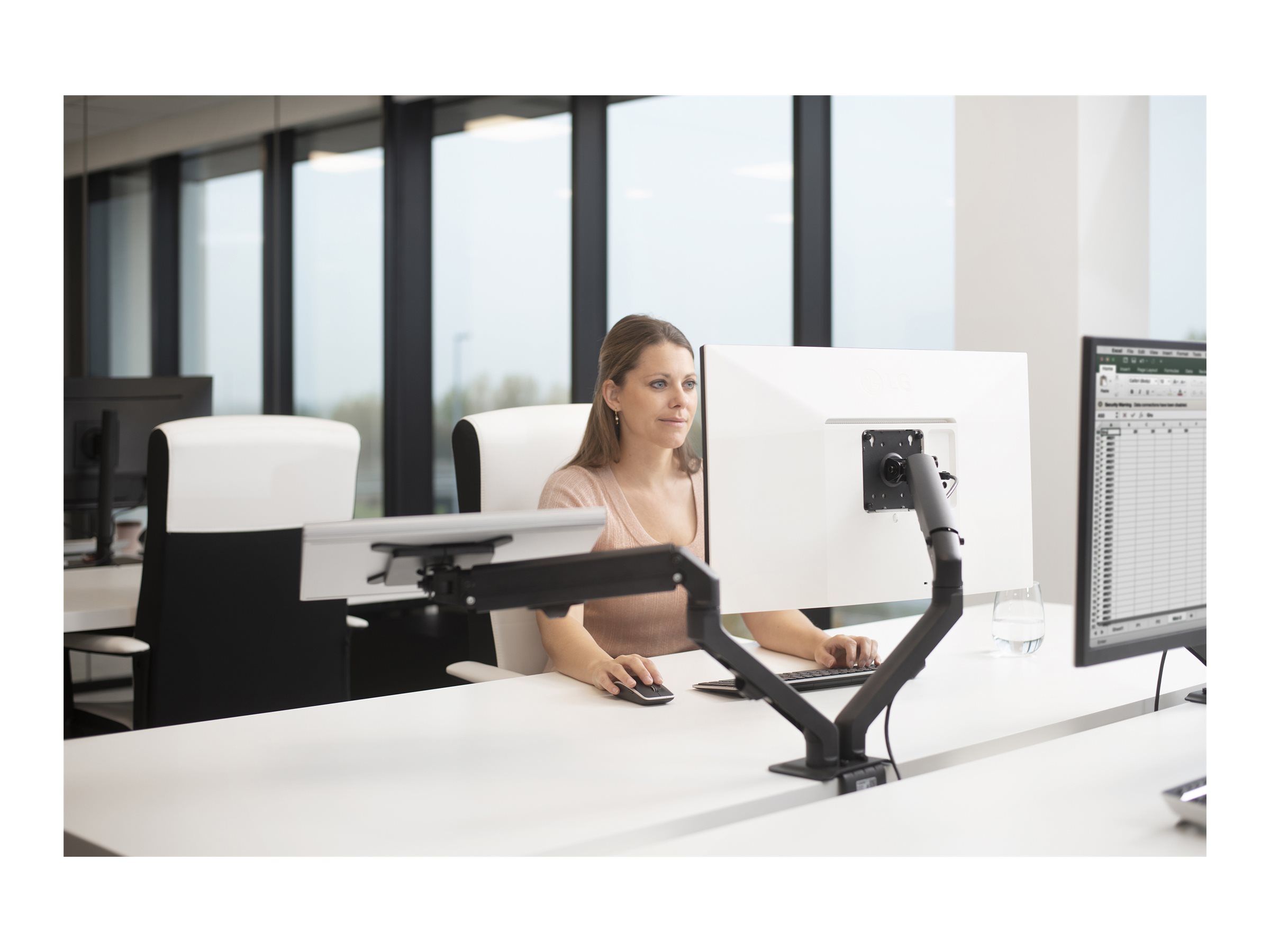 Alle brugere kan nemt placere skærmen, så den passer, ved hjælp af den næsten ubegrænsede justering af hældning, rotation, drejning og højde.