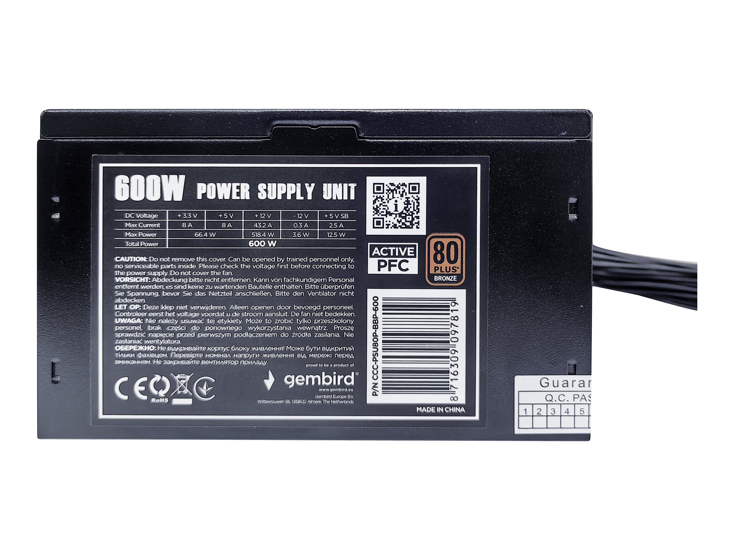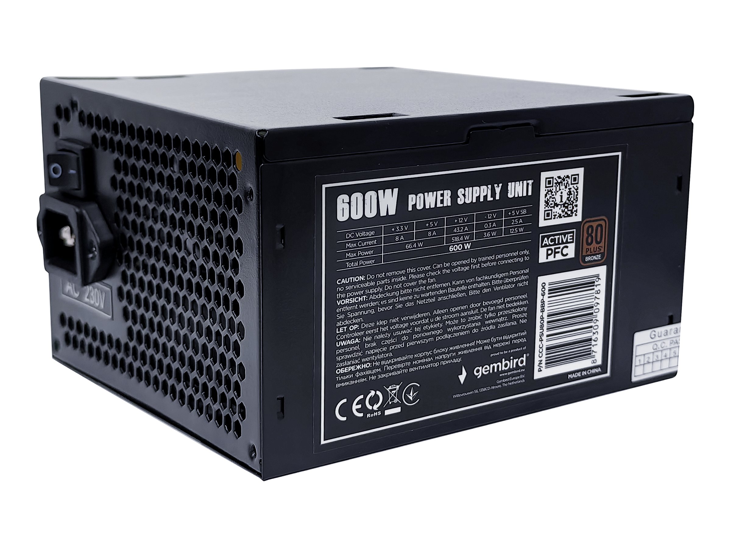 | Produktbeskrivelse | Gembird BlackBoxPower Series CCC-PSU80P-BBP-600 - strømforsyning - 600 Watt |