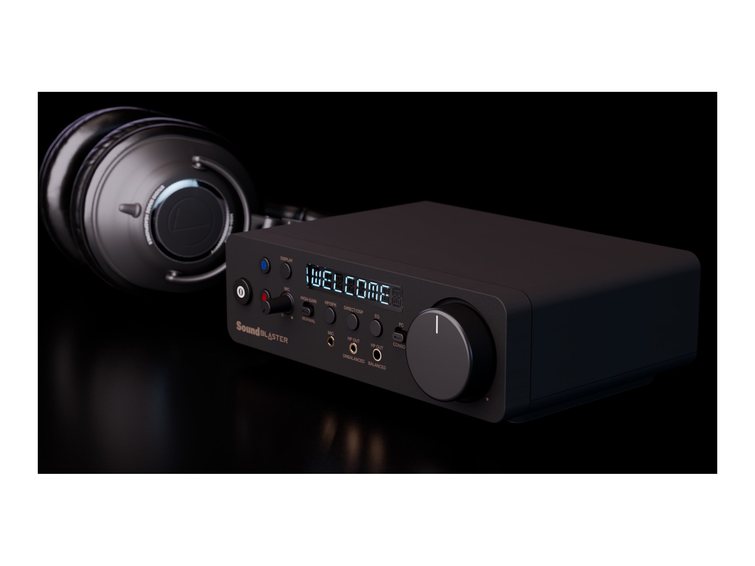 | Hardware-styring og indikatorer | Lydstyrke, mikrofon fortjeneste, manuel forstærkningsstyring, mikrofon til/lyd fra, equalizer til stede, PC/konsol, direkte / DSP-switch, hovedtelefon / højttaler switch, skærmstatus, hovedtelefon gain |