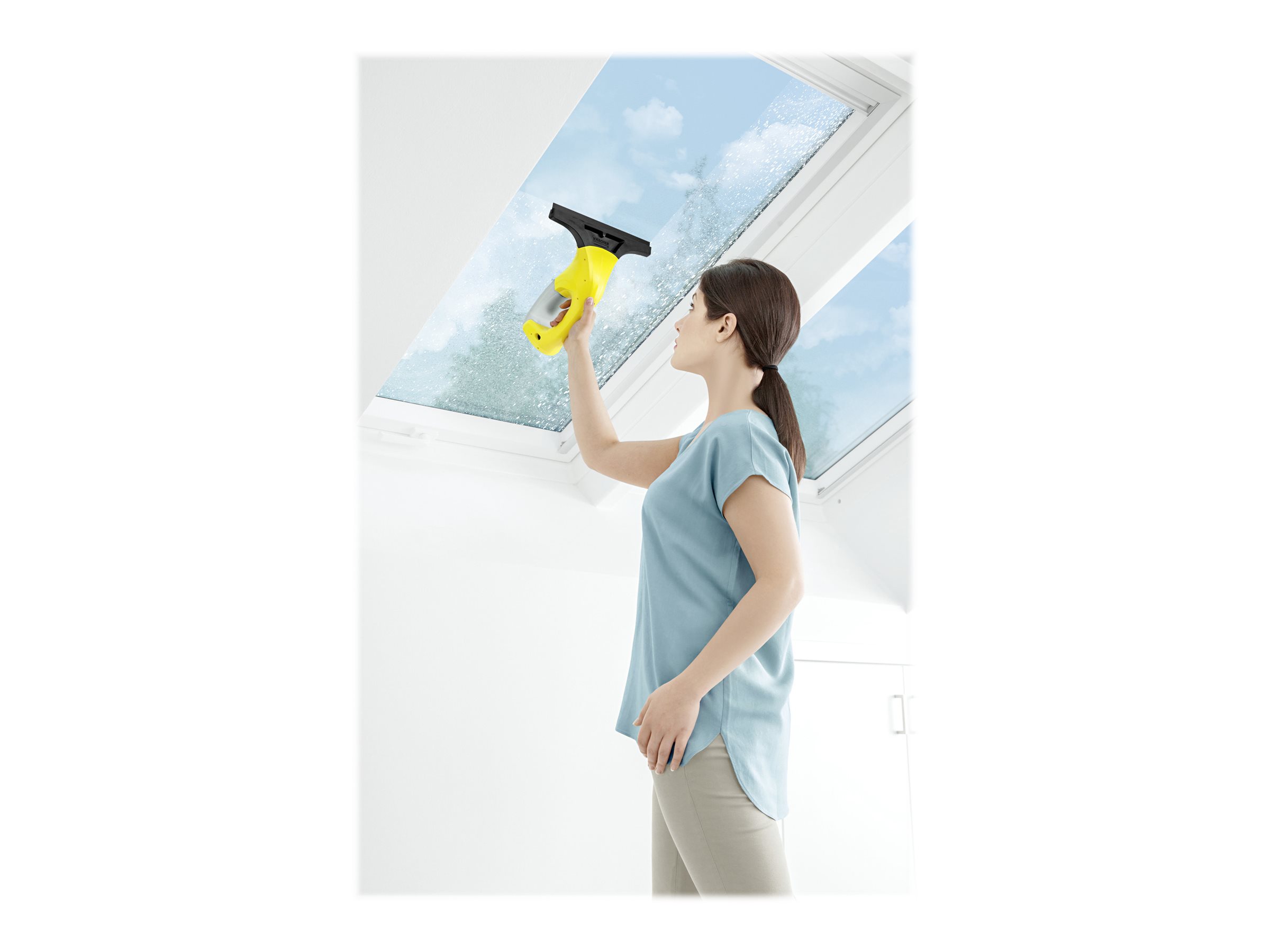 Kärcher WV 1 PLUS håndholdt vinduesvasker kombinerer våd rengøringsteknologi med et kompakt design, hvilket gør det nemt at opnå stribefri vinduer uden besværet med dryp og udtværing.