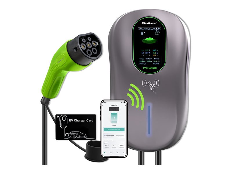| Produktbeskrivelse | Qoltec EV-opladningsstation - 2-i-1, Wi-Fi, LCD, RFID, 3 faser, wallbox - IEC 62196 Type 2 - 22 kW |