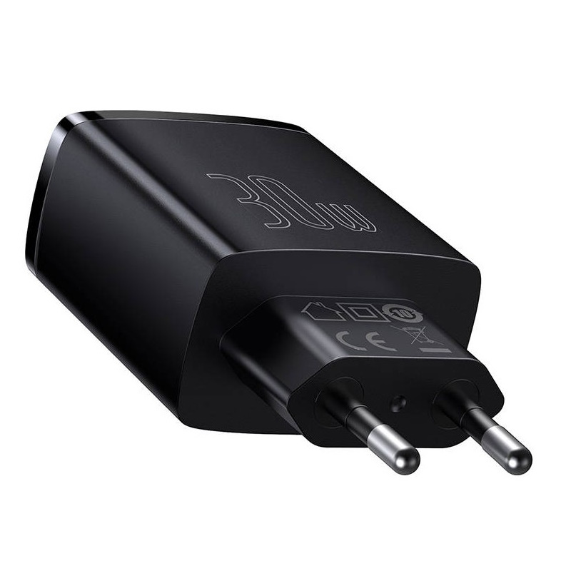 Baseus Compact quick charger - 3-port - oplader - 30 Watt - 1xUSB-C + 2xUSB-A - sort