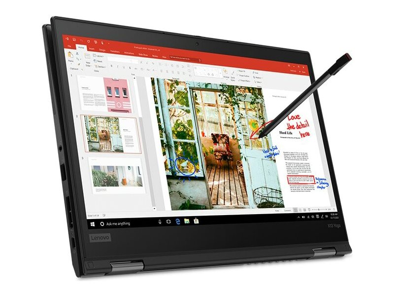 ThinkPad X13 Yoga bærbar 2-i-1 computer, som er mindre end ¾" og vejer mindre end 1,36 kg, er virkelig slank og let, og dens 10. Gen Intel Core-processorkraft betyder, at du ikke skal gå på kompromis med ydeevne på grund af bærbarhed. Den har desuden et 360-graders hængsel, der giver dig adgang til brug i fire fleksible brugstilstande- bærbar computer, tablet, telt eller stativ- og en pen, der er parkeret i kabinettet, til forbedret interaktion i dem alle.