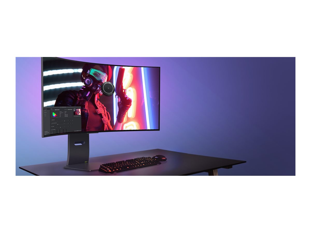Den 39-tommer buede OLED-skærm med et 21:9-billedformat, 3440 x 1440 UWQHD-opløsning og 800R skærmkrumning giver en fordybende spil- og visningsoplevelse, der omslutter dig i alle detaljer i spillet eller indholdet.
