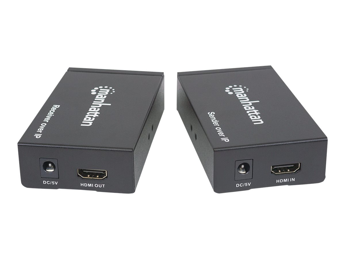| Produktbeskrivelse | Manhattan 1080p HDMI over IP Extender Kit, Extends 1080p Signal up to 120m with a Network Switch and Single Ethernet Cable, IR Support, Black, Three Year Warranty, Box - sender og modtager - video/audio/infrarød forlænger - HDMI |