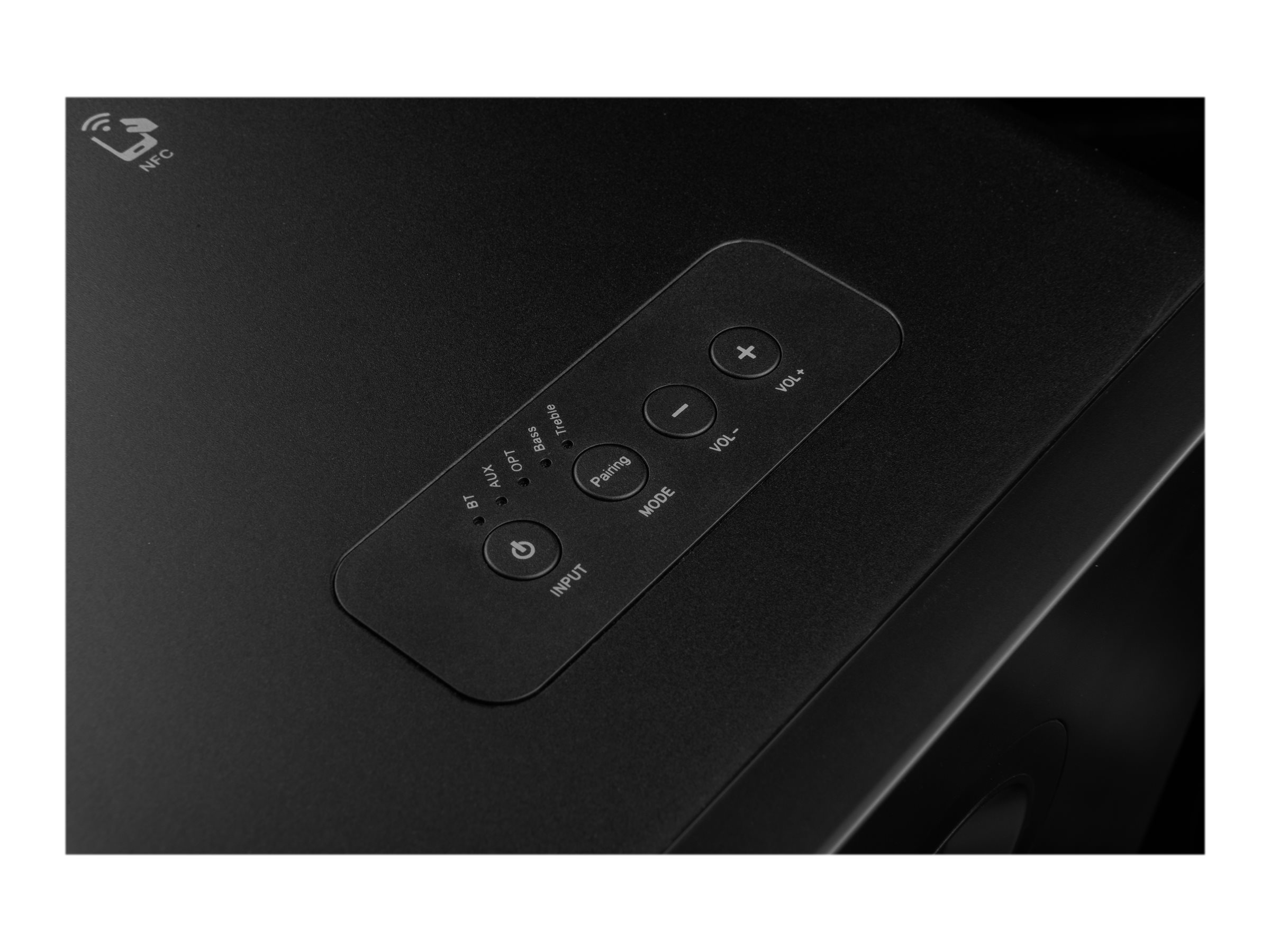 | Controls | Input selector, volume, treble, bass |