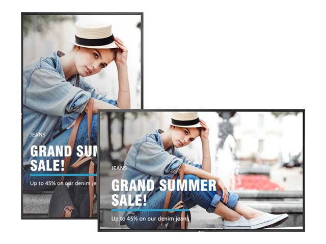 PD-serien er optimeret for digital skiltning og kan bruges både i landskab eller portrætvisning. Denne orienteringsfleksibilitet gør det nemt at få skærmen til at passe perfekt ind i forskellige miljøer.