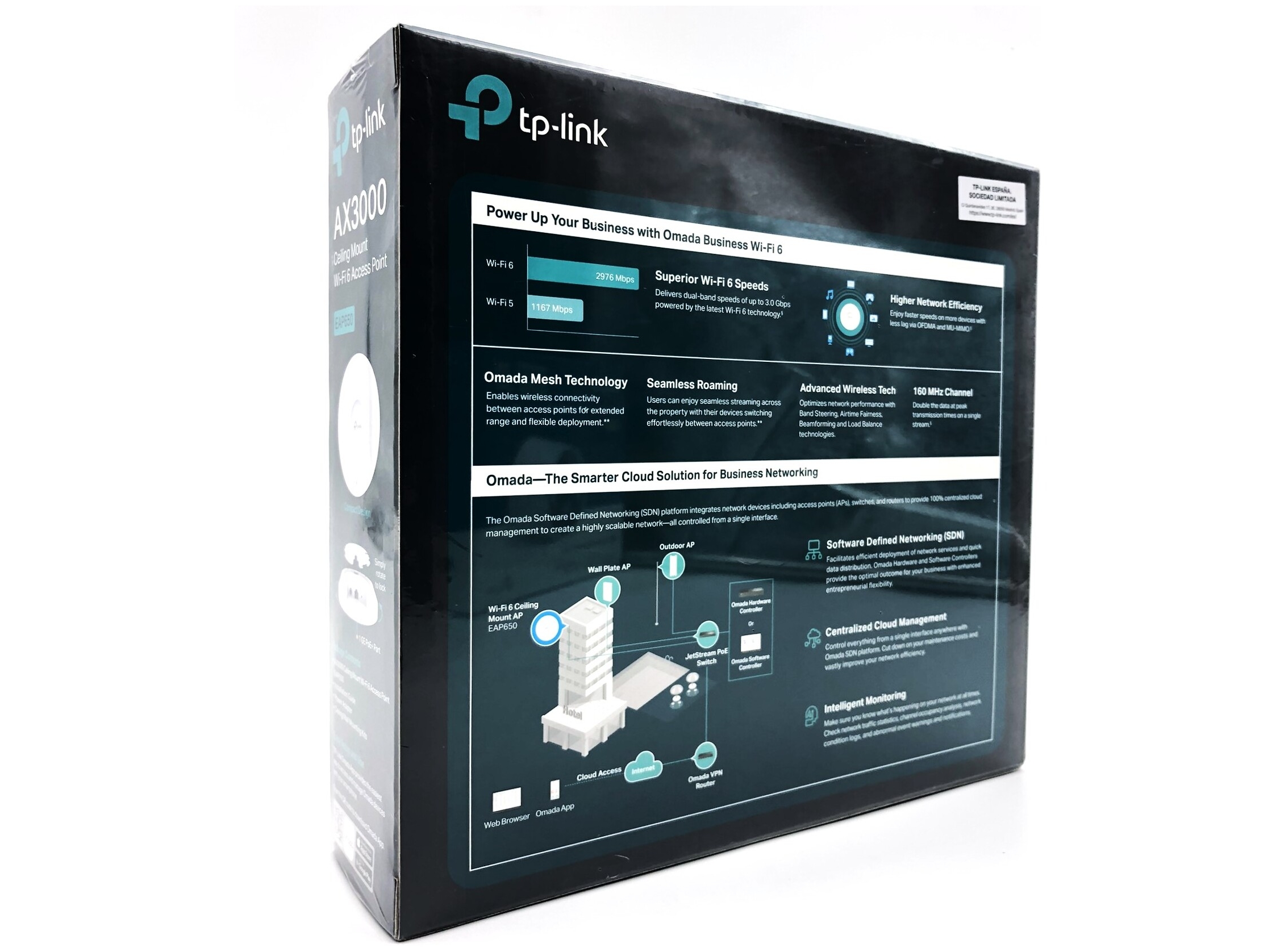 TP-Link Omada EAP650 V1.26 - Trådløs forbindelse - Wi-Fi 6 - 2.4 GHz, 5 GHz - cloud-administreret - væg/loftsmonterbar - for JetStream TL-SG2008 V3, SG2218, SG3210, SG3210 V3, SG3452, SX3016, SX3206, SX3206HPP V1
