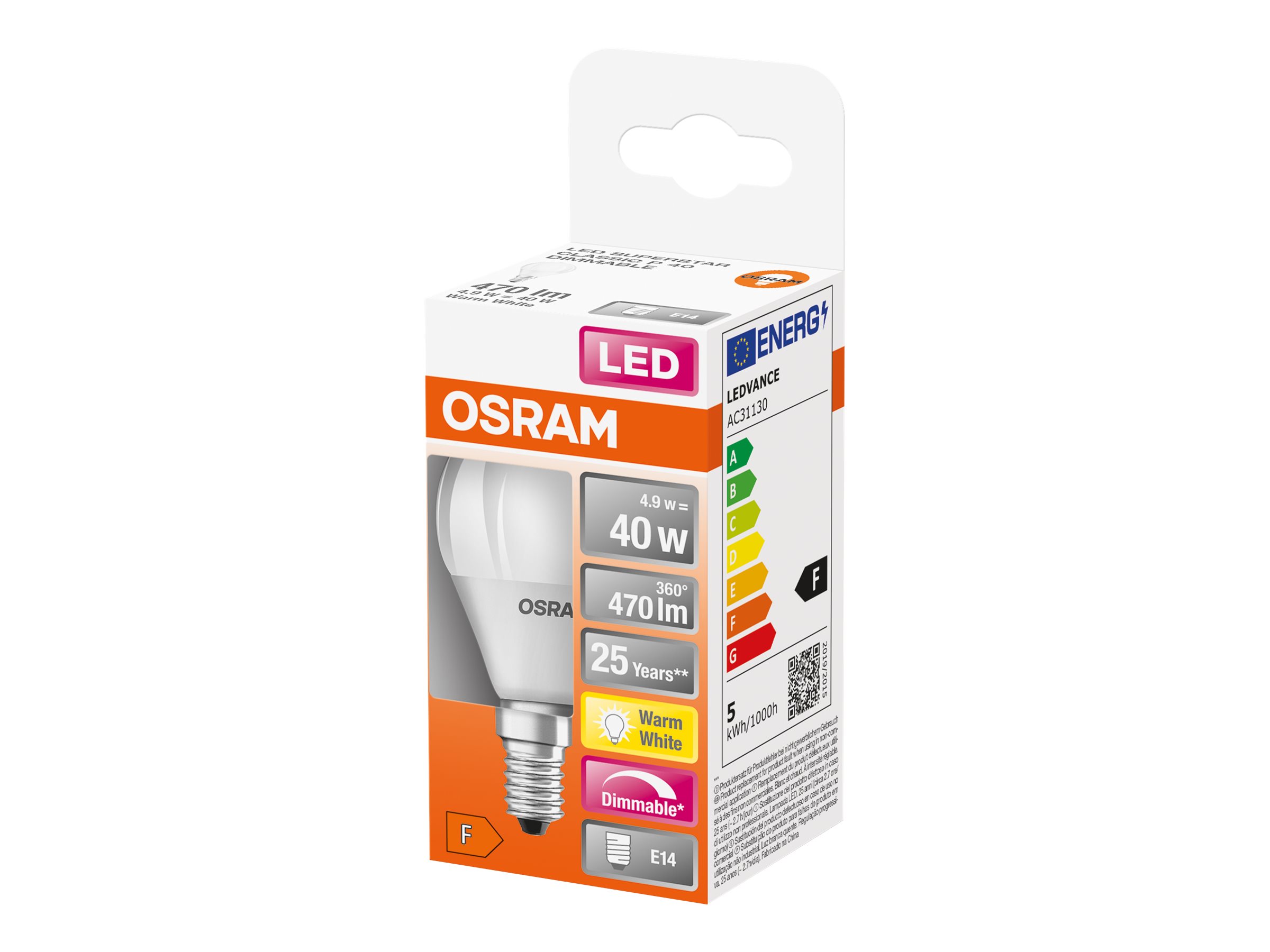 | Produktbeskrivelse | OSRAM LED SUPERSTAR - LED-lyspære - form: P45 - matteret finish - E14 - 4.9 W - varmt hvidt lys - 2700 K |