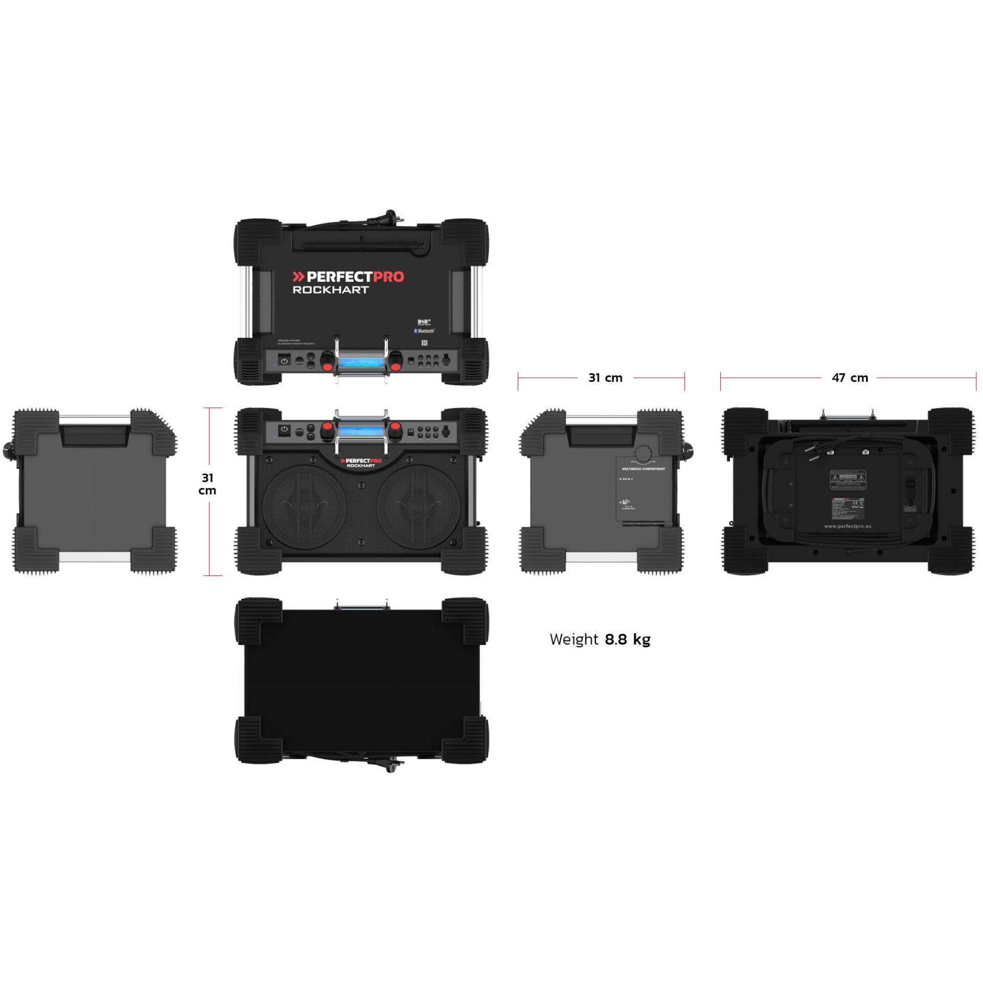 Perfectpro ROCKHART BT 18V - DAB bærbar radio - 60 Watt - sort