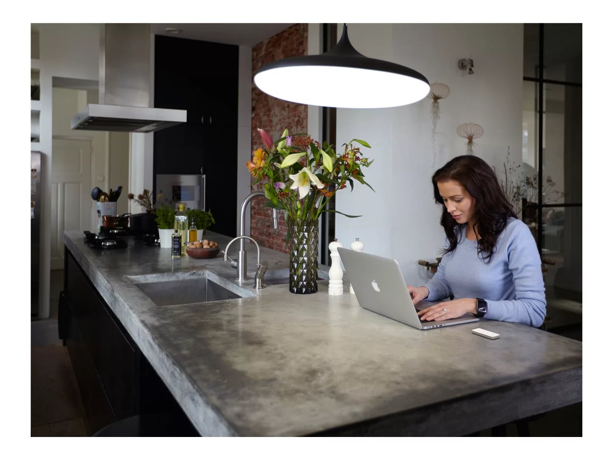 Skru op eller ned for lyset, skift mellem belysningsscener, eller få det bedste lys alt afhængigt af tidspunktet på dagen. Hue Dimmer switch kan fastgøres til væggen eller magnetiske overflader, men kan også bruges som fjernbetjening hvor som helst i hjemmet.