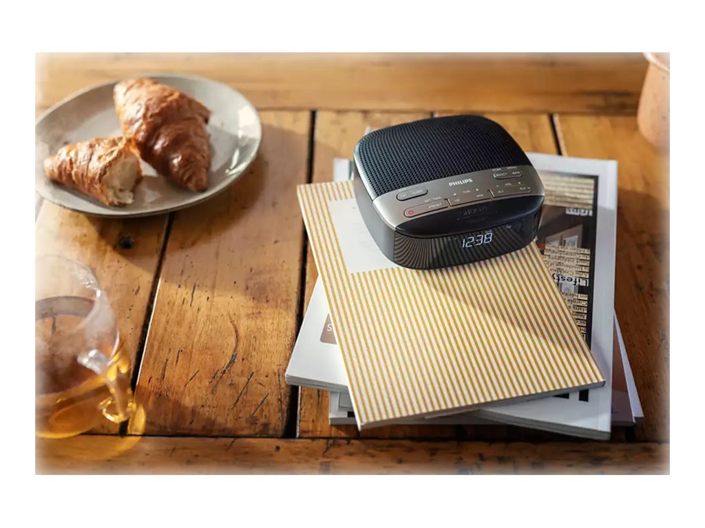 Start dagen med de stationer, du holder af! Med DAB+ og FM giver denne clockradio hundredvis af støjfri stationer at vælge imellem. Lytter du om aftenen? Sleep-timer-funktionen sikrer, at radioen ikke er tændt hele natten.