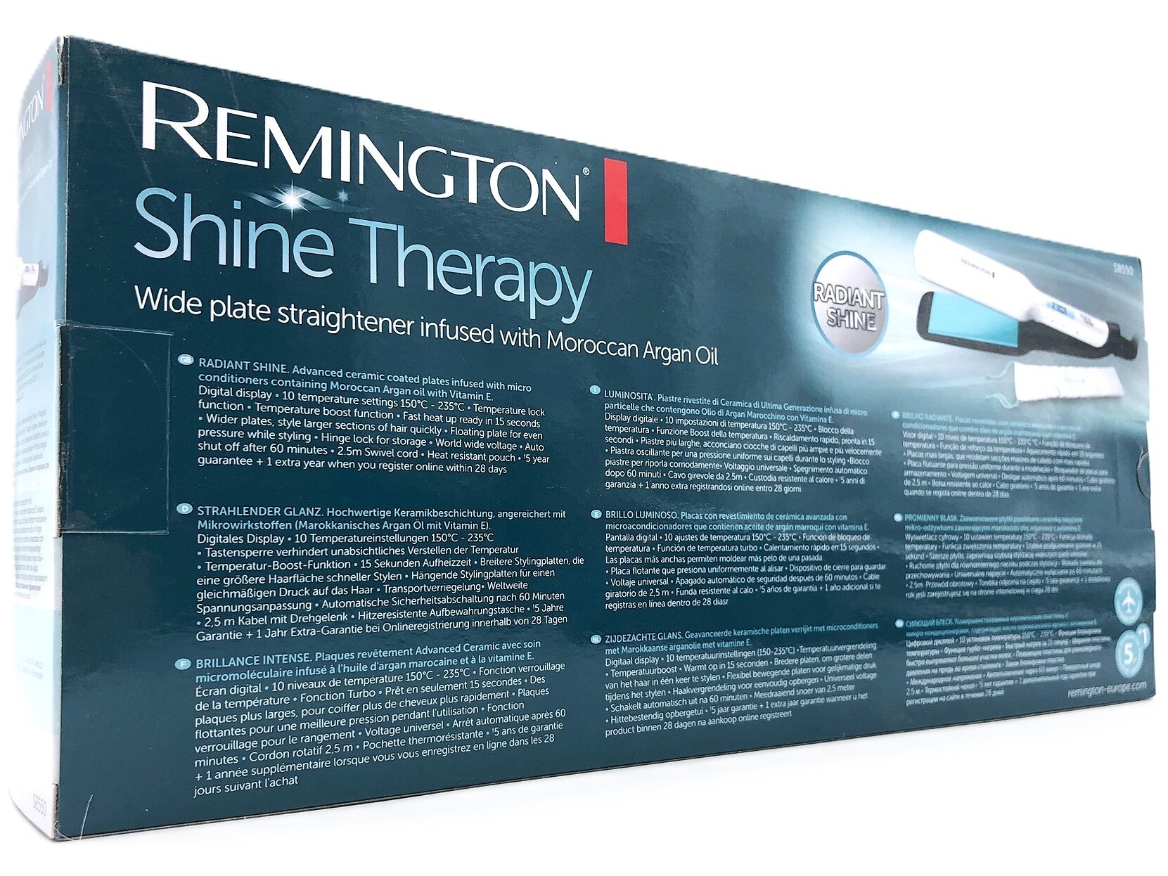 Produktbeskrivelse Remington Shine Therapy S8550 - hårglatter