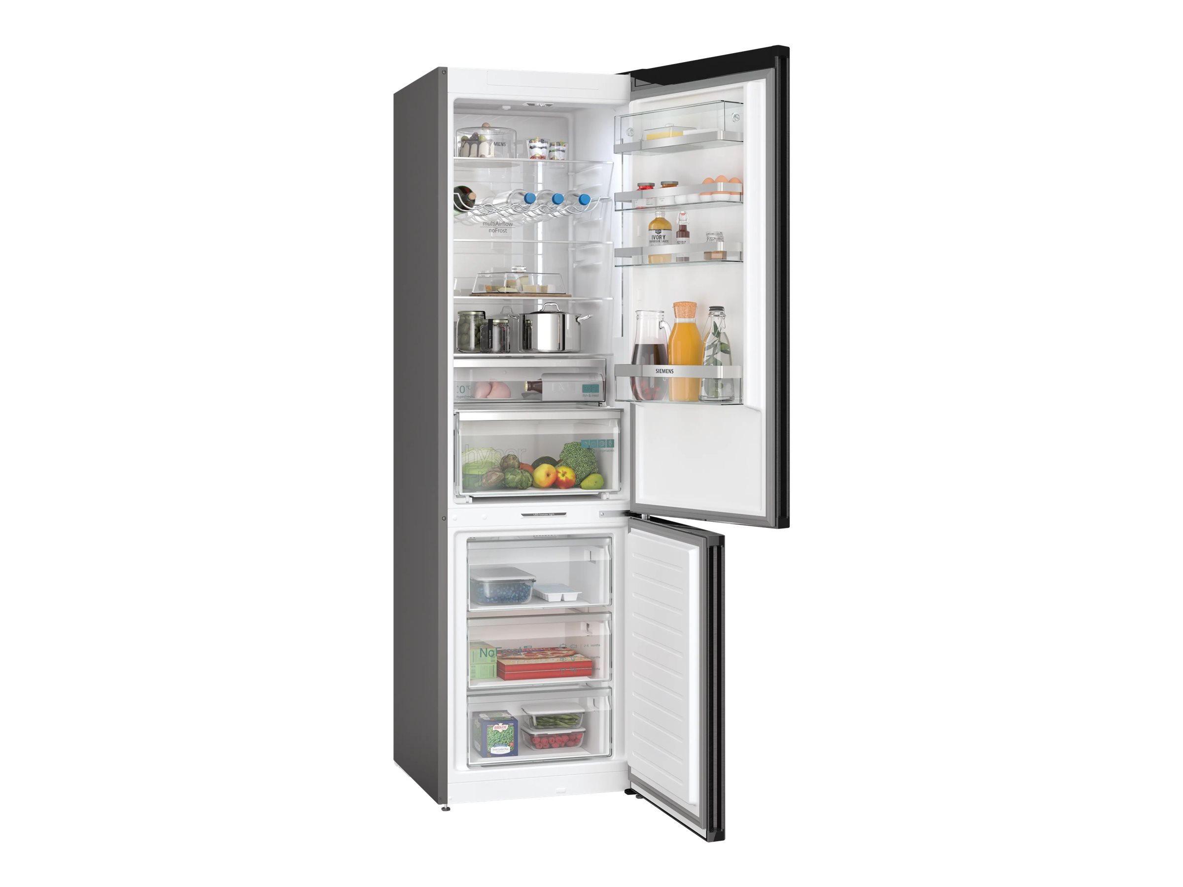 | Refrigerator Shelves / Drawers Details | 3 x shelf - height-adjustable safety glass | 1 x bottle rack - chrome | 2 x shelf - safety glass | 1 x dairy compartment | 1 x bottle door storage | 1 x crisper drawer - humidity controlled hyperFresh | 2 x door rack |