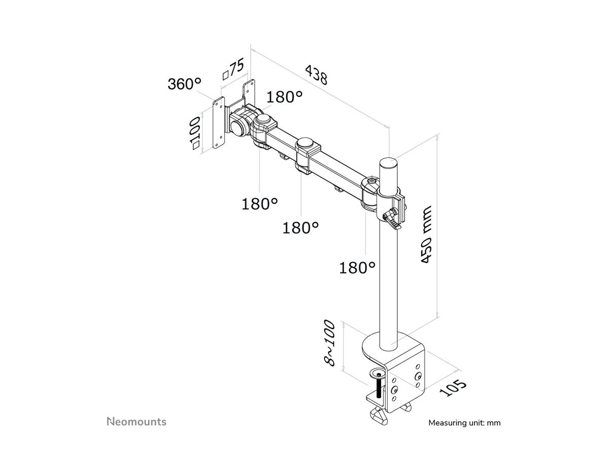| Produkttype | Monteringssæt (fuld bevægelse) - klemmemonterbar, skrivebordsmonterbar |