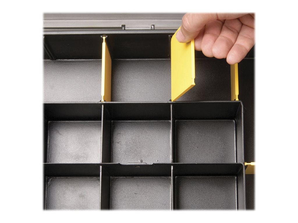 Features Lid organizer, latch locks, adjustable dividers
