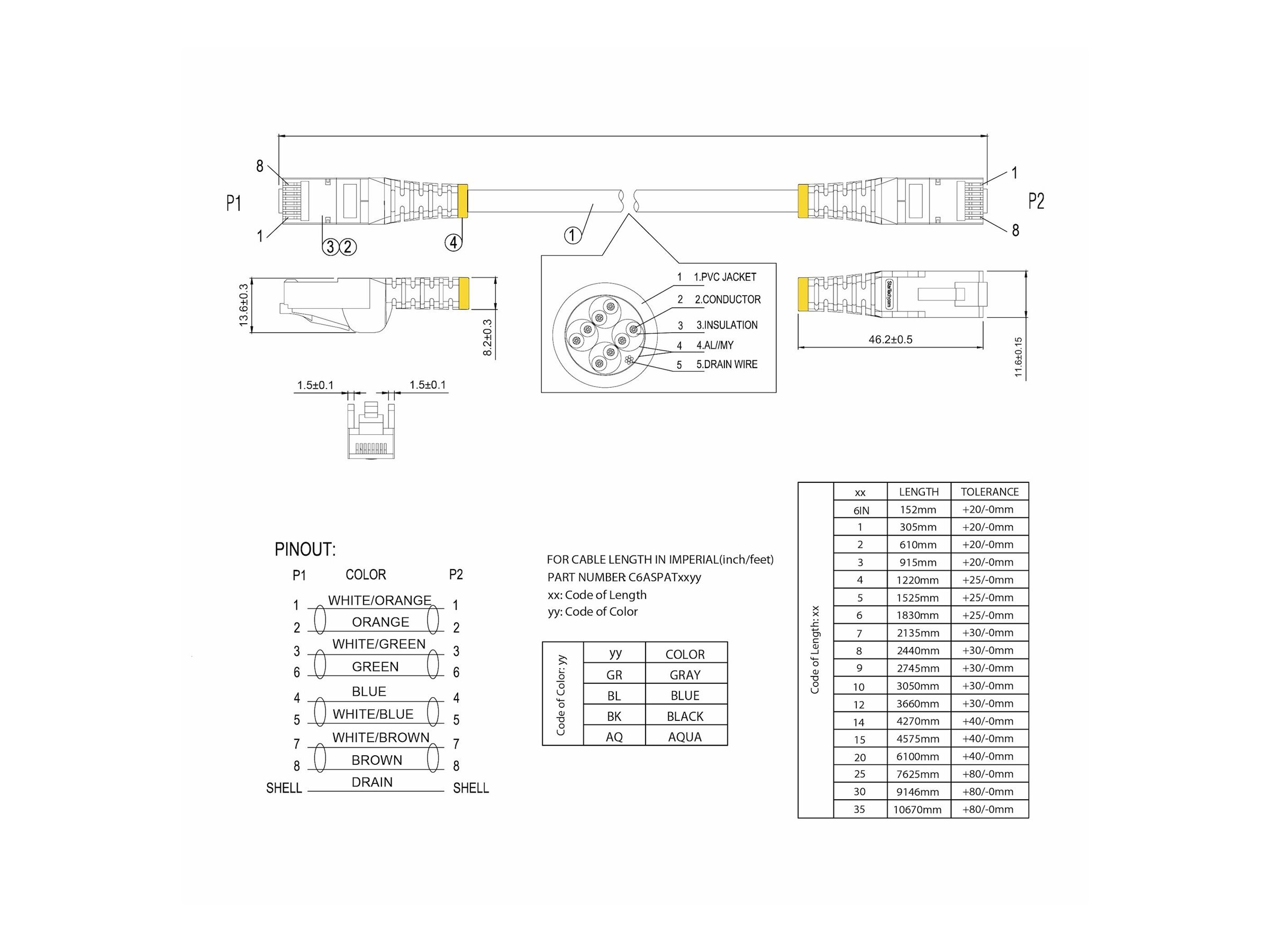| Features | Molded, snagless, strain relief, PoE ready, RFI/EMI shielding |