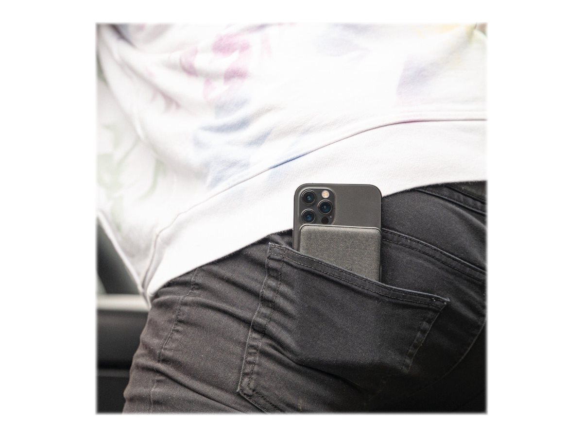 Snap+ juice pack mini indeholder et internt batteri med 5.000 mAh, der vidner om mophies store engagement i optimering af mobil strøm. Brug USB-C-input-/outputporten til hurtig genopladning af snap+ juice pack mini eller op til 12 W opladning1 af en anden enhed. Det magnetiske område sikrer nøjagtig placering, så opladningen begynder, så snart der er kontakt, og den integrerede LED-strømindikator med fire lys viser opladningsstatus og aktuel batterilevetid.
