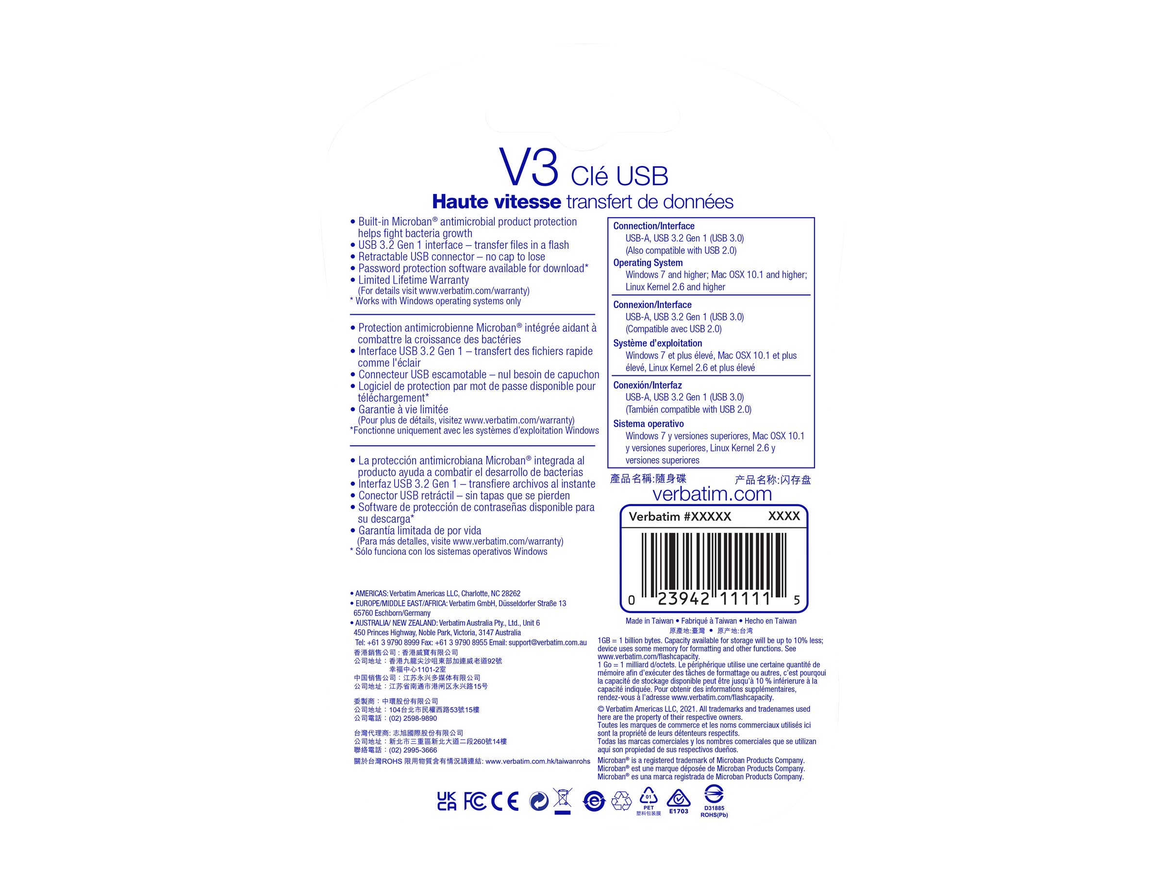 Omfatter en USB 3.0-grænseflade til SuperSpeed-dataoverførsel, Store 'n' Go V3 USB-drevet er op til 10 gange hurtigere end USB 2.0, hvilket gør det hurtigere til overførsel og lagrig af større filer af alle typer.