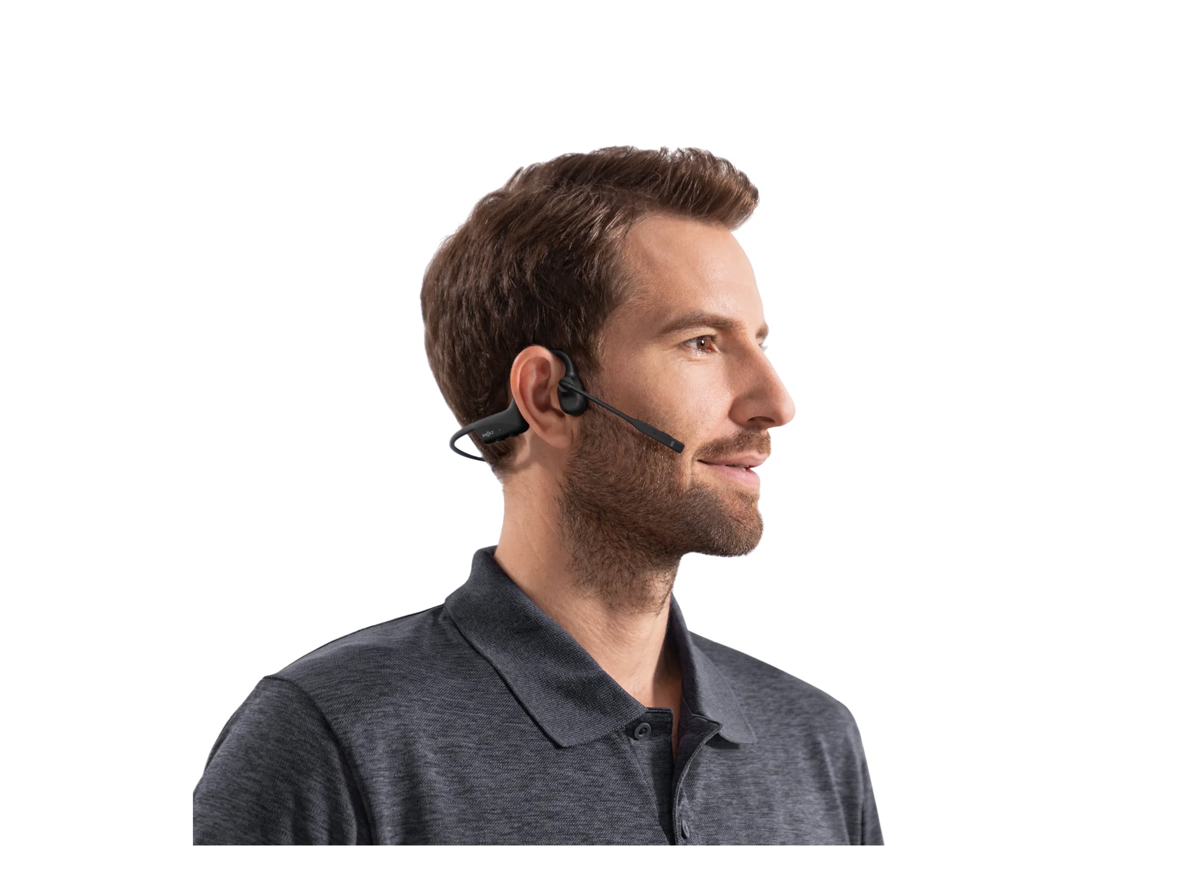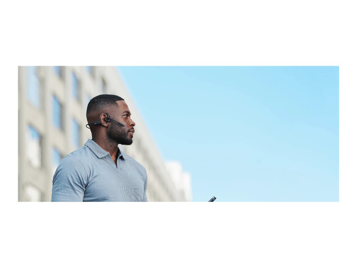 Med benledende teknologi og PremiumPitch 2.0 leverer dette headset stereolyd i høj kvalitet direkte gennem dine kindben og holder dine ører åbne for omgivende lyde.