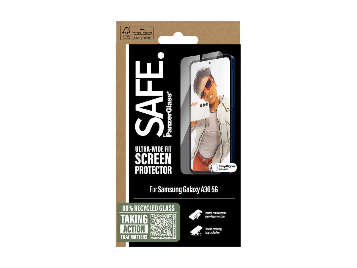 Skærmbeskytteren fra SAFE. by PanzerGlass er for real. Designet til dig, dine venner og din kæreste. Skabt til at modstå scratches og drops, når I slentrer gennem byen og danser hele natten. Og lavet af 60 % genanvendt glas, så vi sammen kan tage endnu et skridt mod en bedre fremtid. Glasset fungerer som en diskret airbag, der beskytter din skærm, uden at det går ud over telefonens funktionalitet og lækre design. Det har endda en belægning, der reducerer fedtfingre og snavs og virker perfekt med skærmens ultrasoniske fingeraftryksscanner. Når du vælger SAFE., gør du det ikke kun for din egen skyld, men også for alle dem, der kan få glæde af din telefon efter dig! Ved at passe godt på din elskede mobil kan du nemlig give den et andet, tredje og nogle gange fjerde liv hos en anden, som vil elske den lige så højt som dig. Det er ren telefonkærlighed – og én måde at bidrage til mere bæredygtig fremtid på!I 2024 reducerede vi mængden af papir i vores emballager med 66 %*, og vi leverer selvfølgelig dette produkt i en genanvendelig FSC -mærket æske. SAFE. er noget, man føler sig. Det skal være nemt, ligetil og for alle. Uden lange manualer og langhårede instruktioner. Med EasyAligneren bliver installationen så legende let (seriøst!), at de fleste kan klare den i første forsøg. Og får du brug for en ekstra hånd, tjekker du bare trin-for-trin-guiden eller QR-koden til videoen. Og husk: Så snart skærmbeskytteren sidder på din mobil, er det slut med at frygte slo-mo-synet af din skærm, der nosediver mod asfalten. Det kommer muligvis aldrig til at ske, men hvis det gør, vil du fortryde, at du ikke klikkede "Tilføj til kurv". Selv den bedste skærmbeskyttelse er nul værd, hvis den går ud over skærmoplevelsen! I hvert fald hvis du spørger os. Derfor har den her skærmbeskytter størrelsen "Ultra-Wide Fit"! Det betyder, at den beskytter fronten af din telefon, samtidig med at den giver dig en fuldendt skærmoplevelse og efterlader lidt plads langs kanterne til et cover. Vil du være ekstra SAFE., kan du altså nemt kombinere skærmbeskyttelsen med et cover og en kameralinsebeskytter fra SAFE. by PanzerGlas . Keep your phone SAFE. *Gennemsnitlig reduktion fra 2022 til 2024 beregnet ved at sammenligne udvalgte PanzerGlass kerneprodukter.