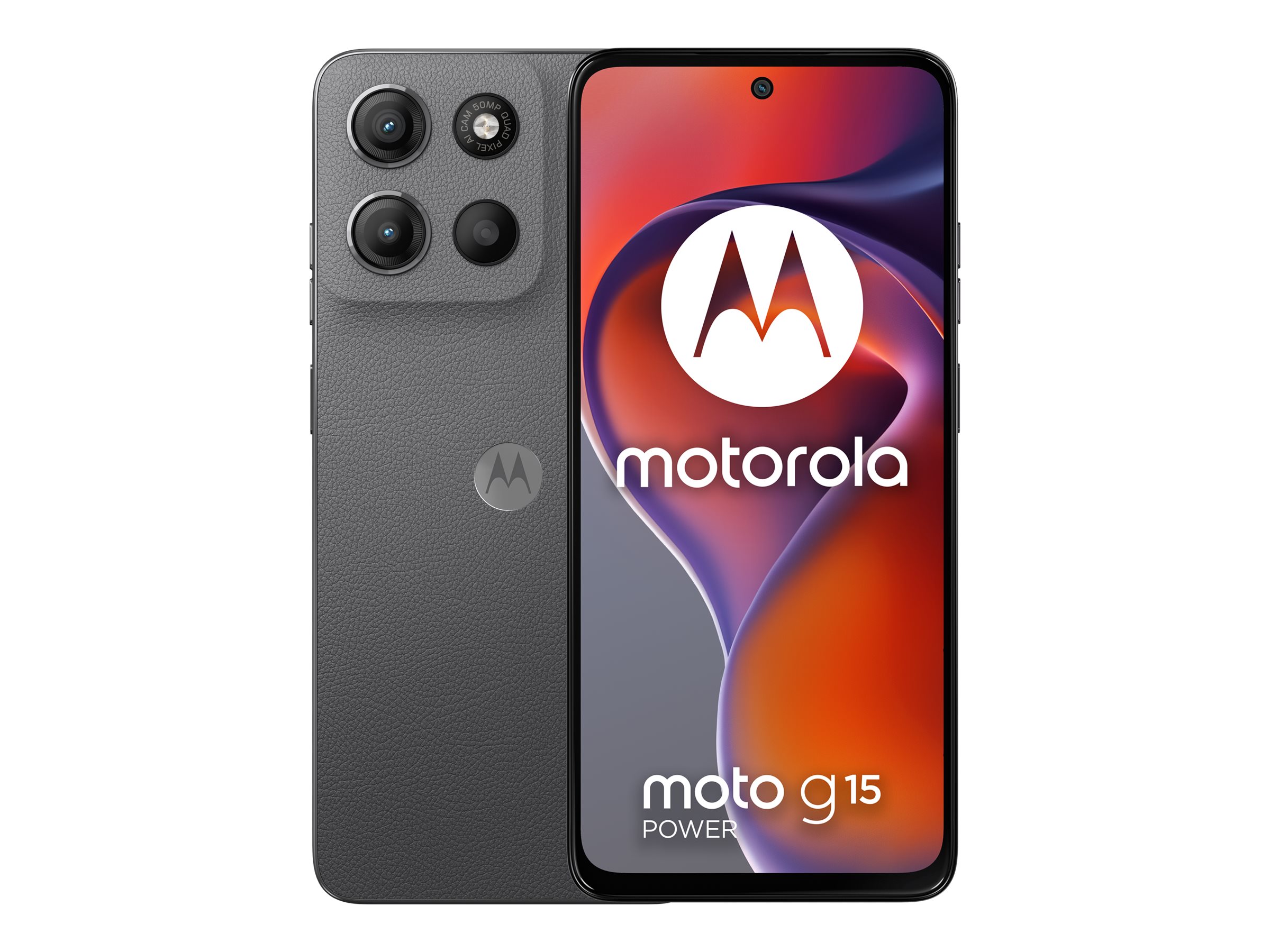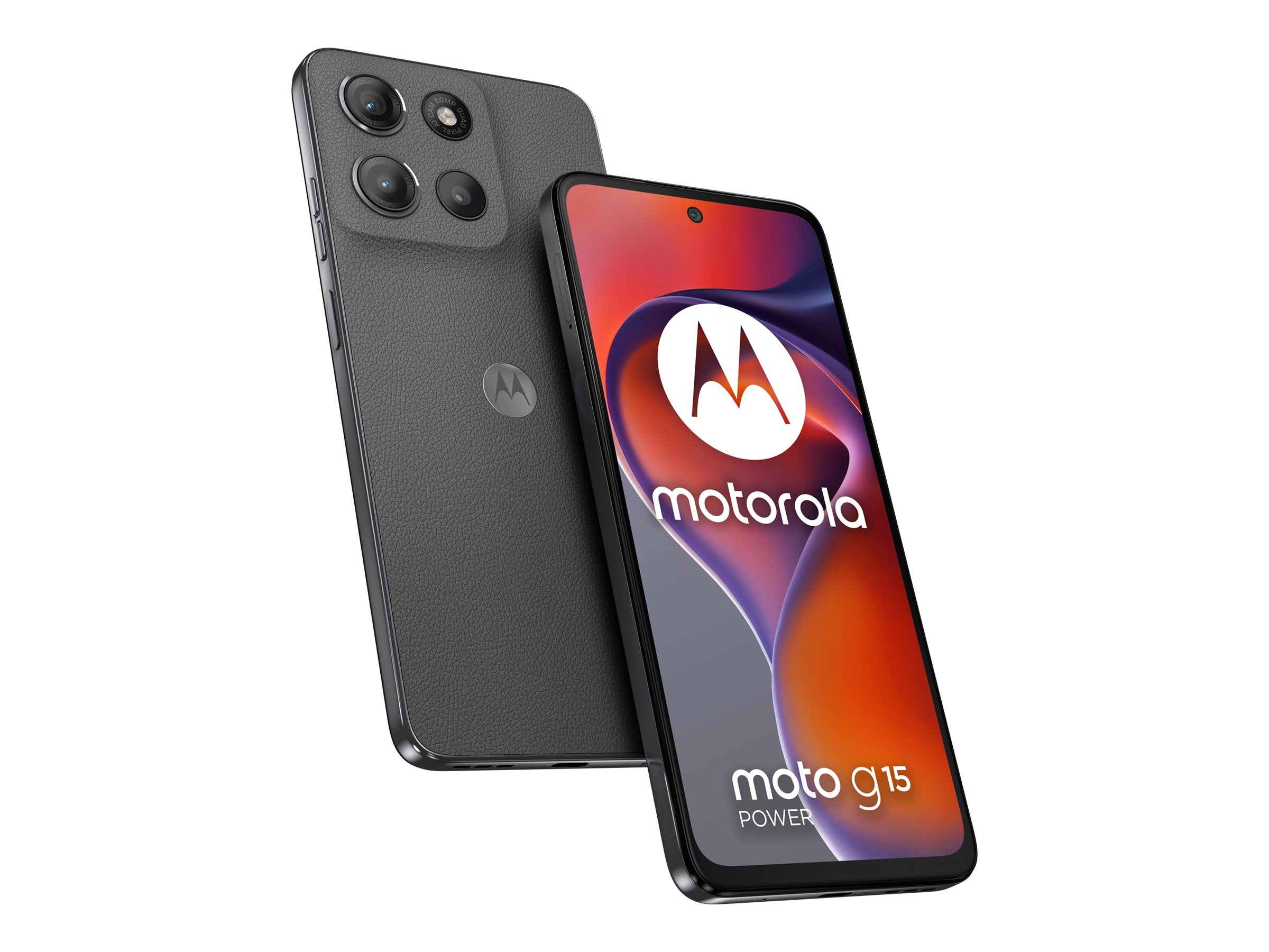 Motorola Moto G15 Power - 4G smartphone - dual-SIM - RAM 8 GB / Intern hukommelse 256 GB - microSD slot - LCD-skærm - 6.72" - 2400 x 1080 pixels (60 Hz) - 2x bagkameraer 50 MP, 5 MP - front camera 8 MP - tyngdekraft-grå