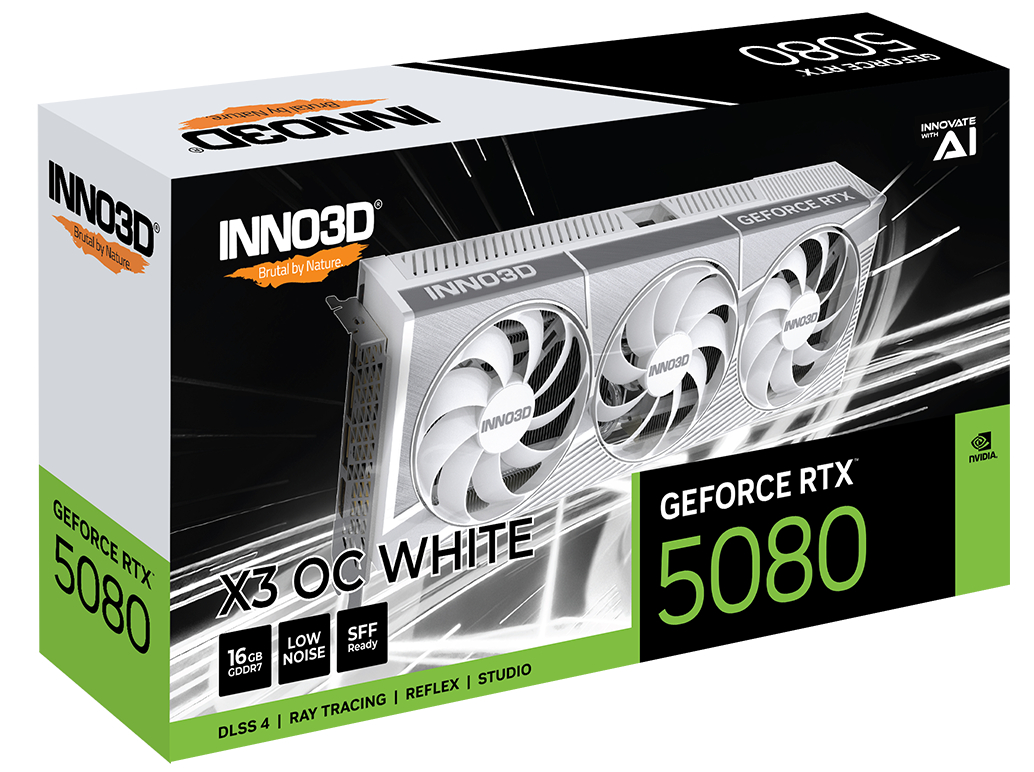 | Produktbeskrivelse | Inno3D GeForce RTX 5080 X3 OC - grafikkort - GeForce RTX 5080 - 16 GB - hvid |