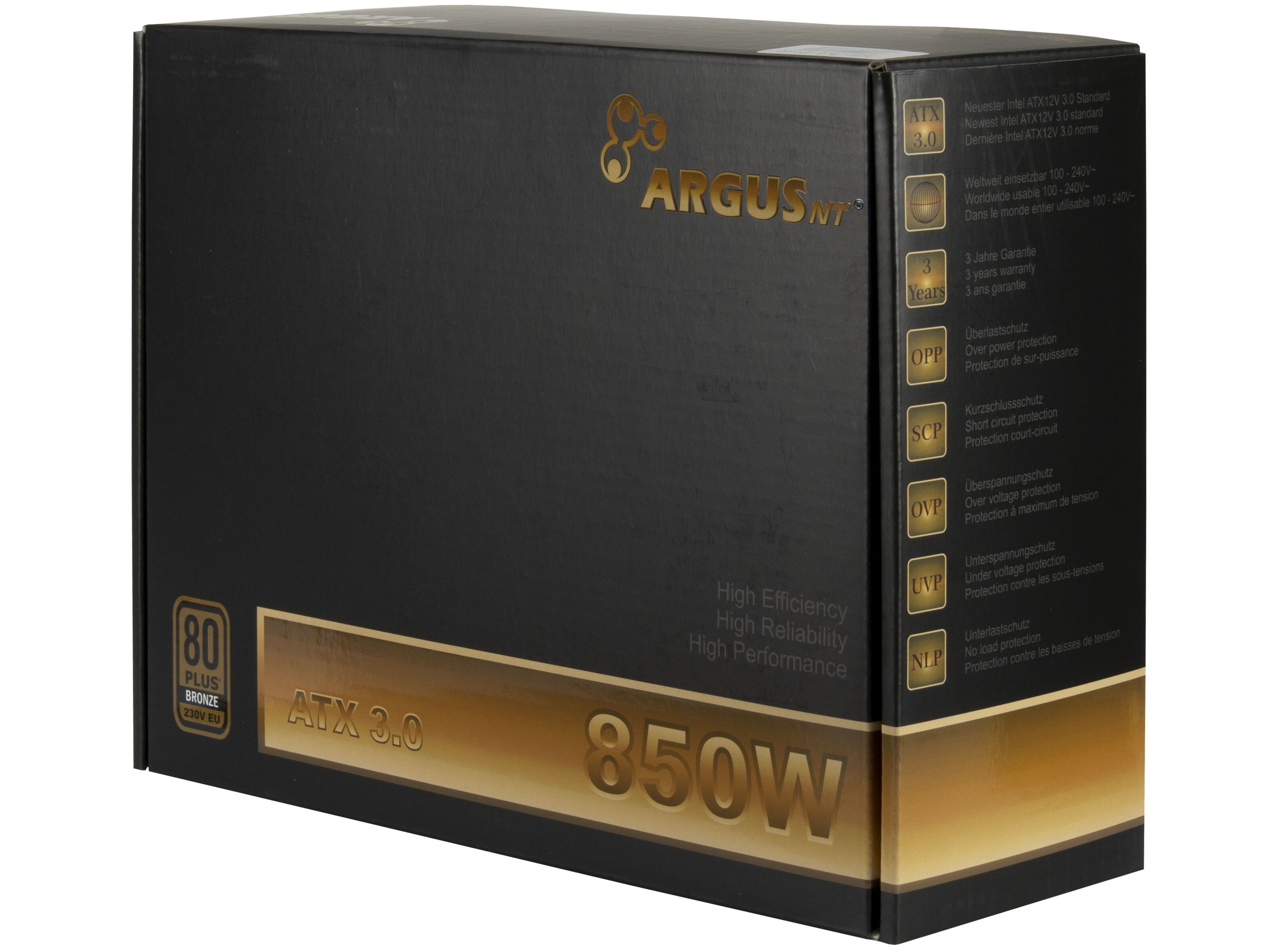 Argus BPS-850 - Strømforsyning (intern) - ATX12V 3.1 - 80 PLUS Bronze - AC 100/240 V - 850 Watt