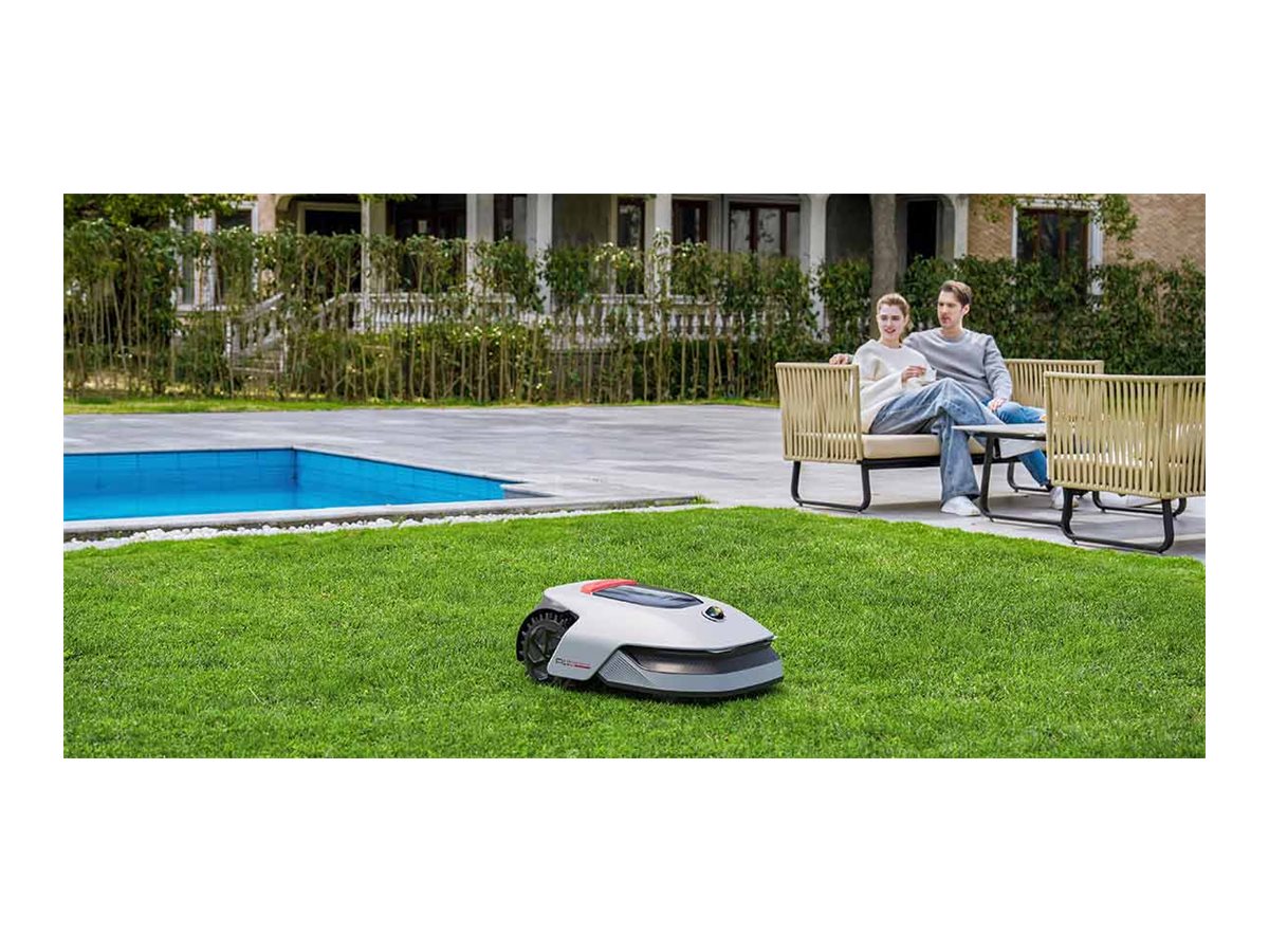 OmniSense-navigationssystemet gør det muligt for plæneklipperen at tilpasse sig omgivelserne, nemt undgå forhindringer og samtidig sikre en grundig dækning af hele plænen.