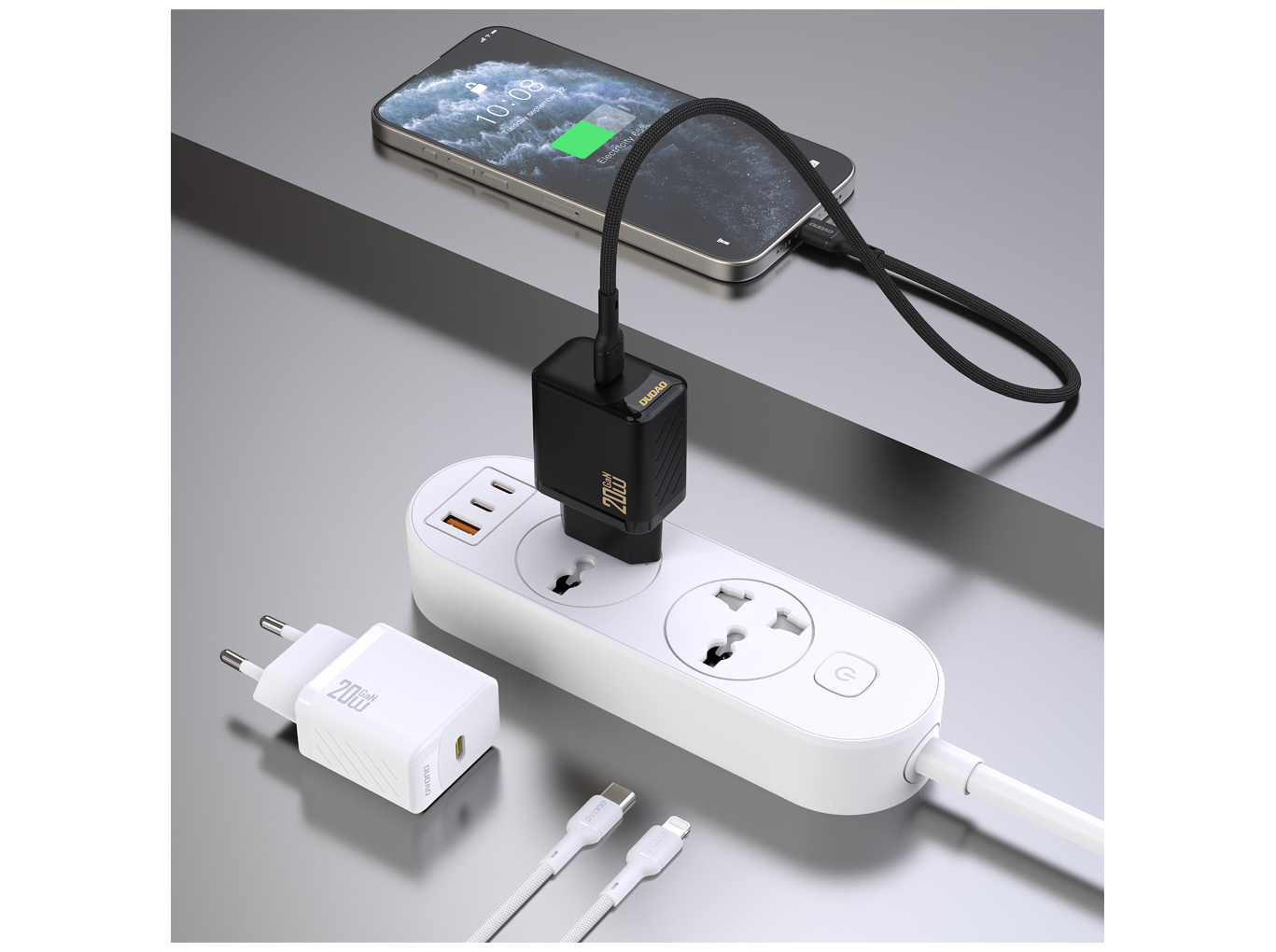 Dudao - Strømforsyningsadapter - GaN - 20 Watt - USB-C - USB-C til Lightning Kabel - Europa - Sort