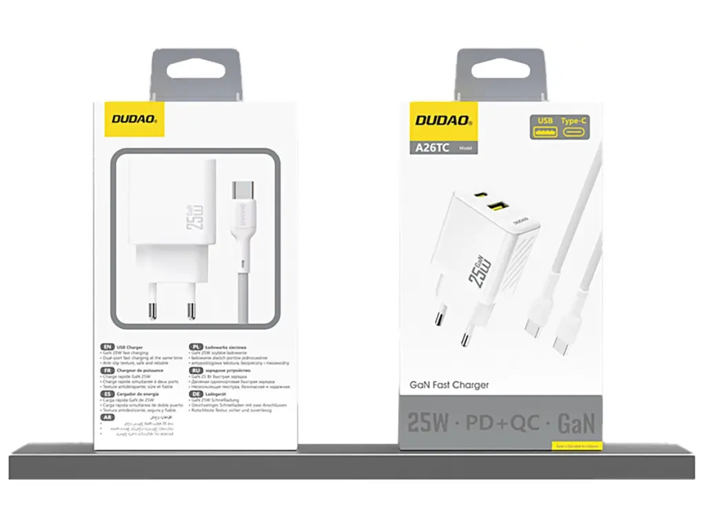 Dudao - Strømforsyningsadapter - GaN - 25 Watt - 1x USB-C, 1x USB-A - Europa - Hvid
