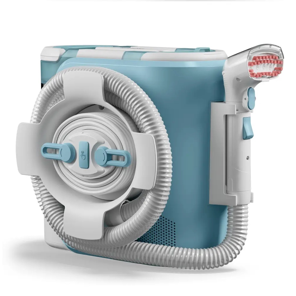 En slangelængde på 1,6 m kombineret med en beholderdesign sikrer praktisk rækkevidde og manøvrering omkring møbler under rengøringen.